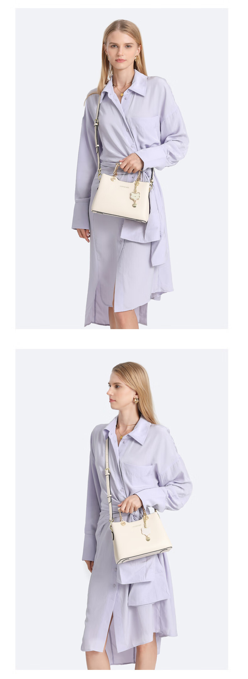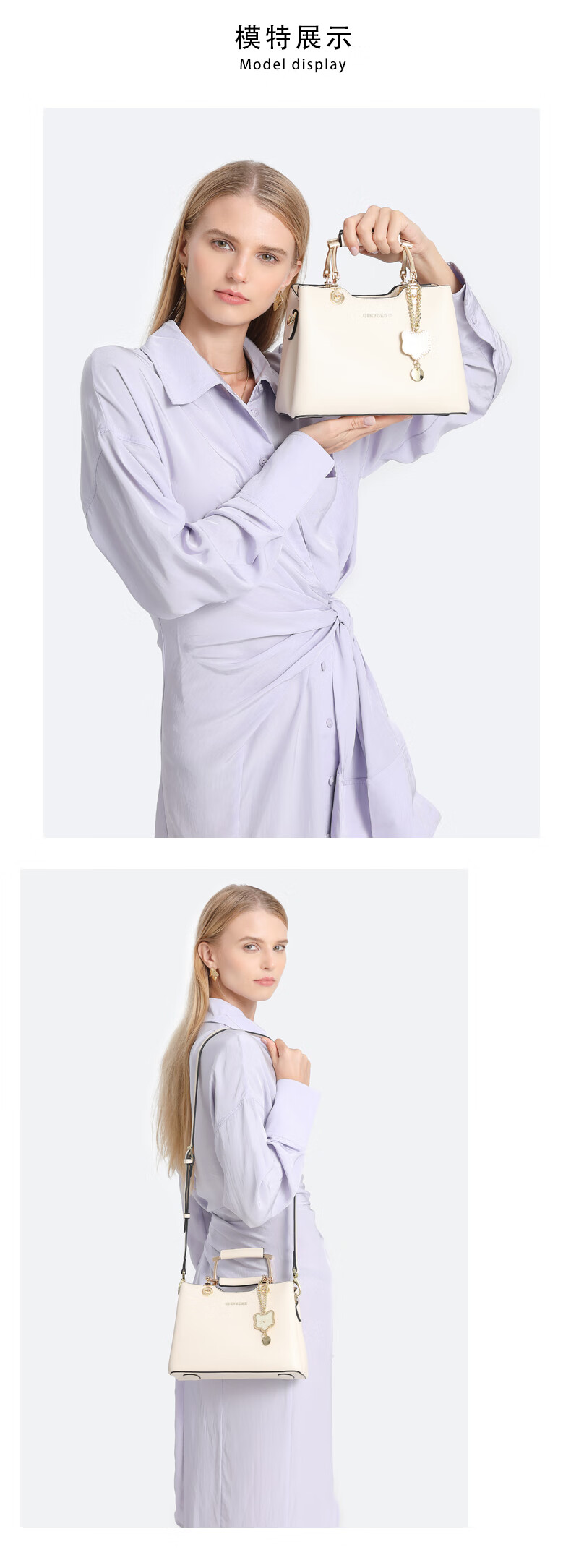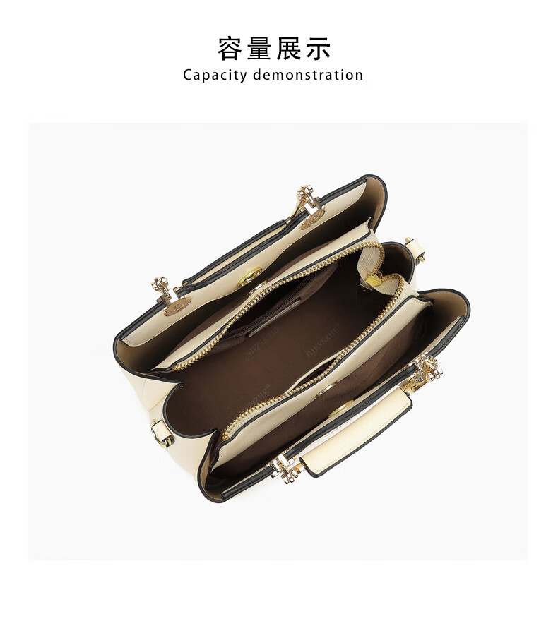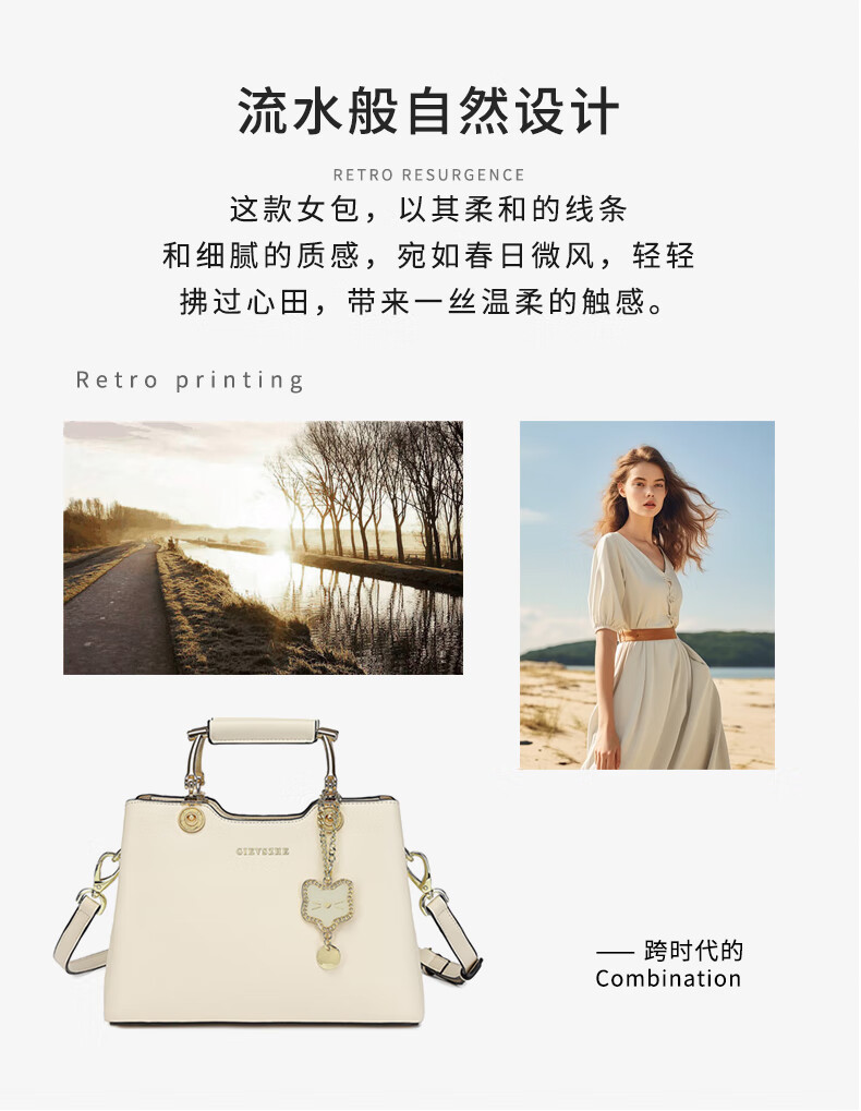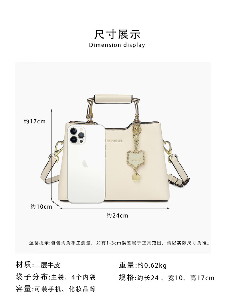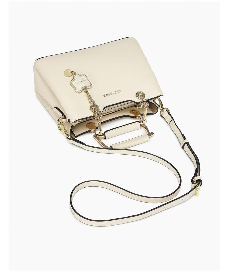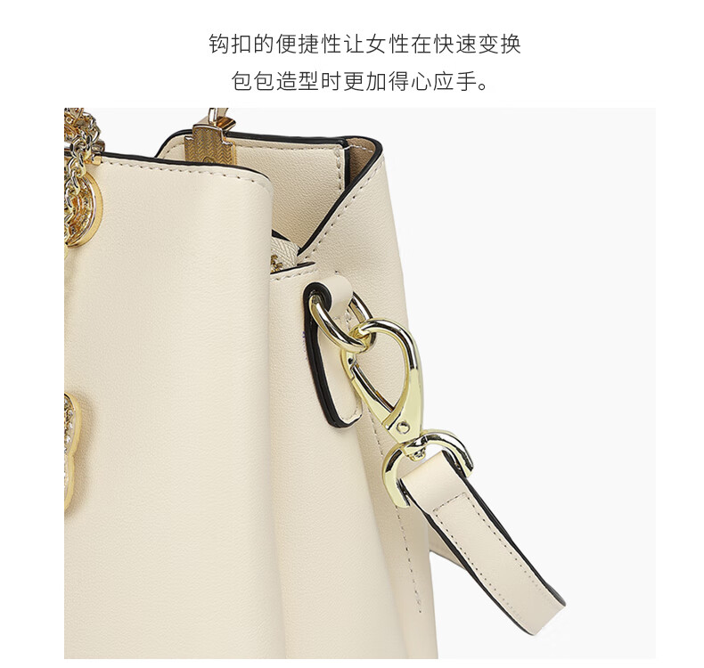 纪诗哲品牌包包女包2026年新款奢侈女士手提包情人节生日礼物送老婆女友 米白色【猫咪挂件】 中包