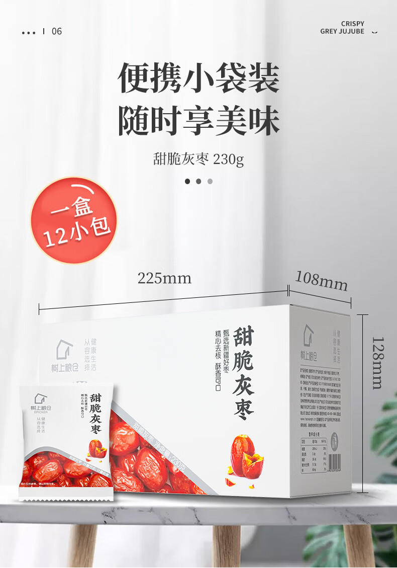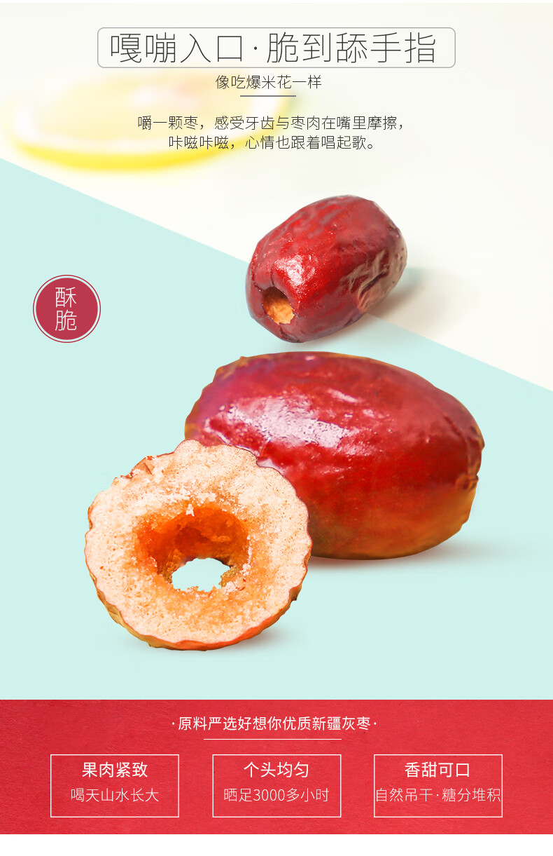 好想你_树上粮仓脆灰枣 香酥脆枣去核酥脆新疆特产红枣网红零食节日 【约12小包】甜脆灰枣230g/箱