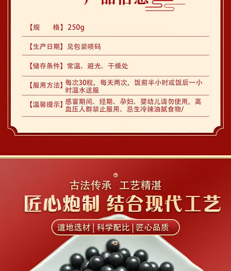 同仁堂(TRT)原料八味地黄丸 250克大瓶装 药食同源 真材实料 100-克一瓶约600粒 100粒*100瓶