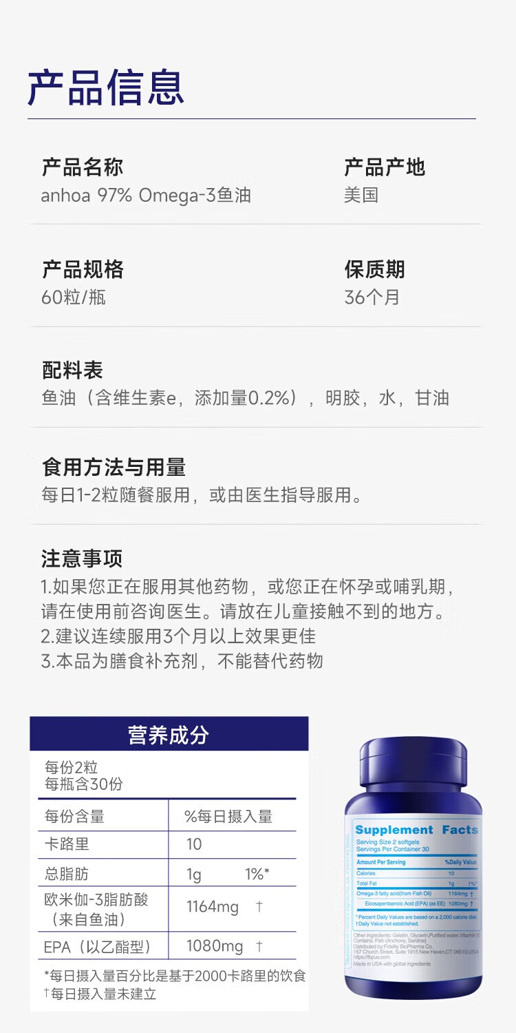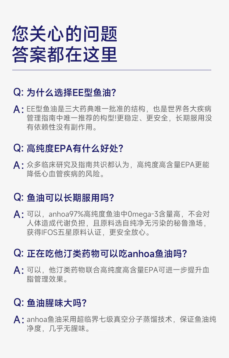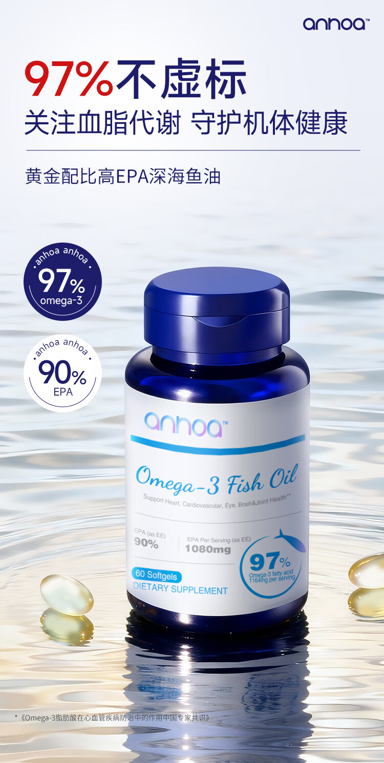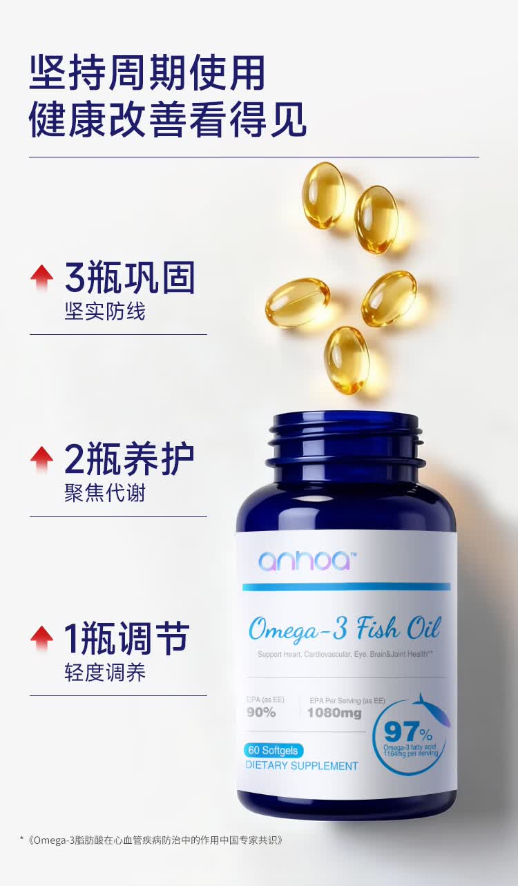 anhoa安和雅97%Omega-3高纯度EPA深海鱼油代谢心脑养护成人官方旗舰店 【3瓶巩,固防线】180粒国货 60粒*3瓶
