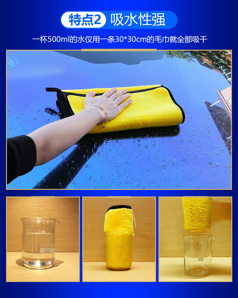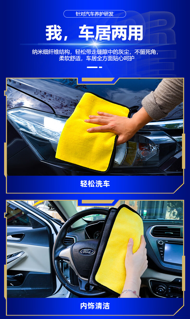 【京东物流】洗车毛巾擦车专用毛巾无痕不掉毛超强吸水抹布清内饰 擦车巾小尺寸【30CM*30CM】 一条装