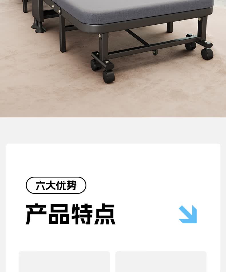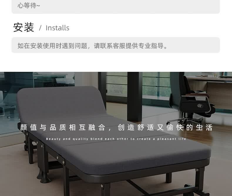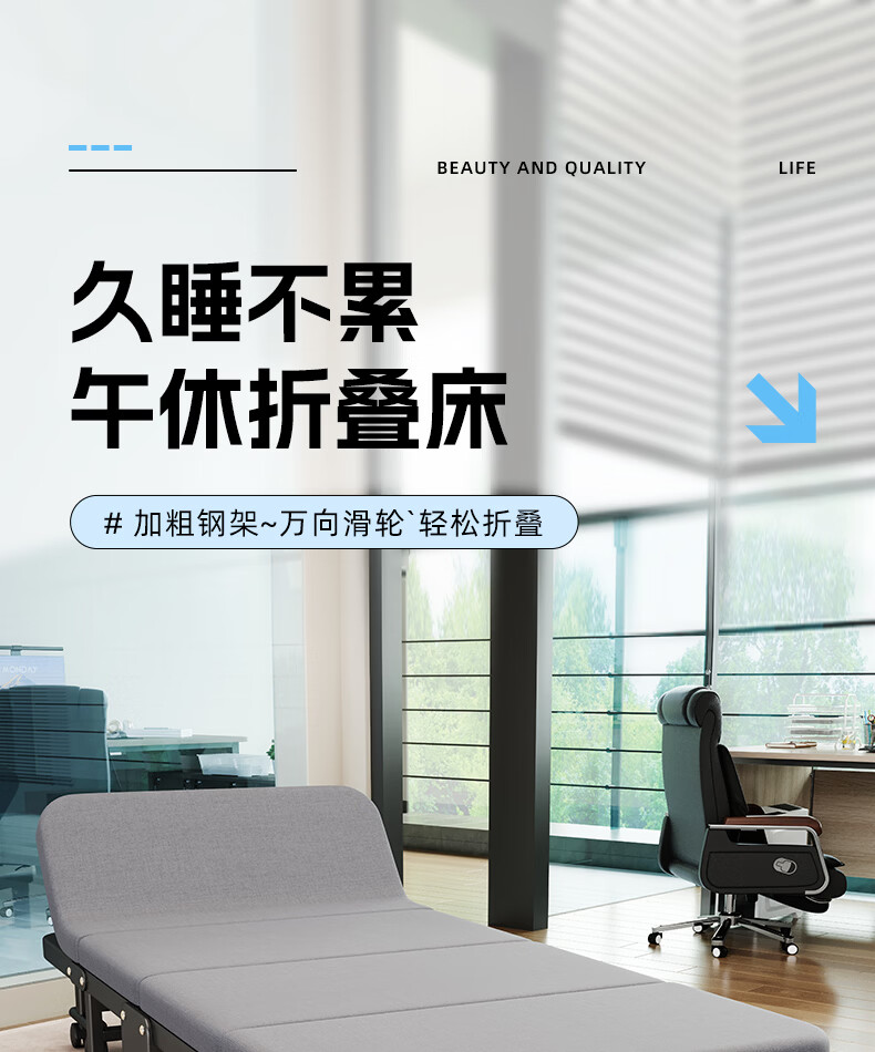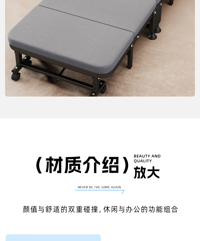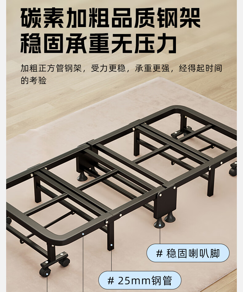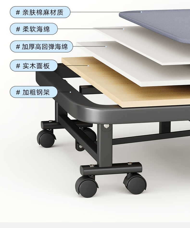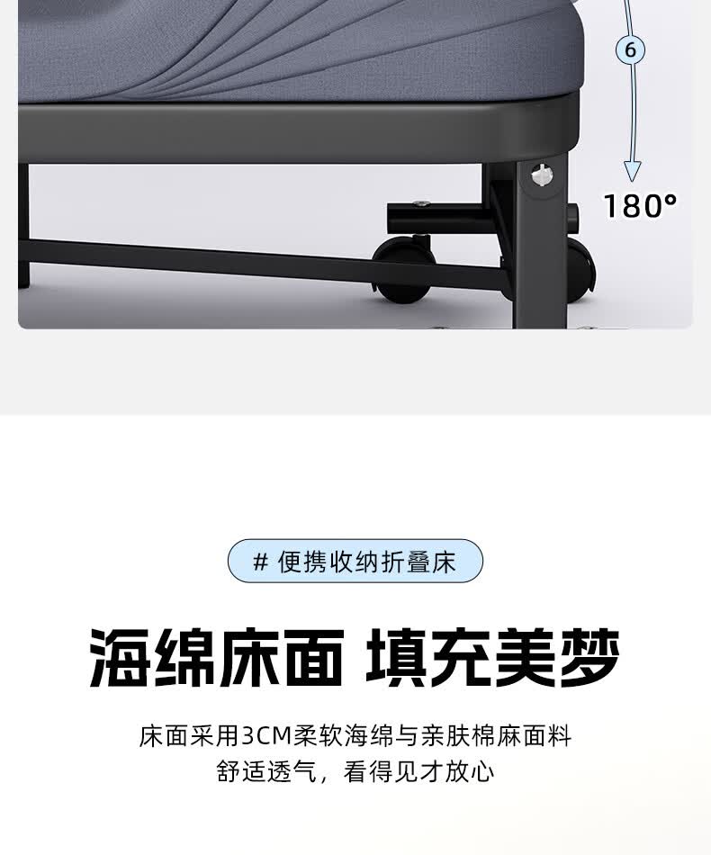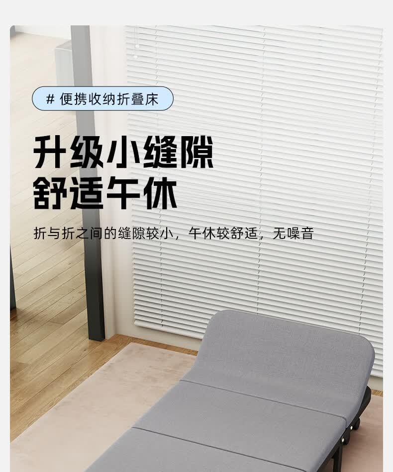 树浩单人午睡神器办公室折叠床午休床医院简易陪护铁床可移动便携硬床 【白色钢架-海绵款】180*60cm