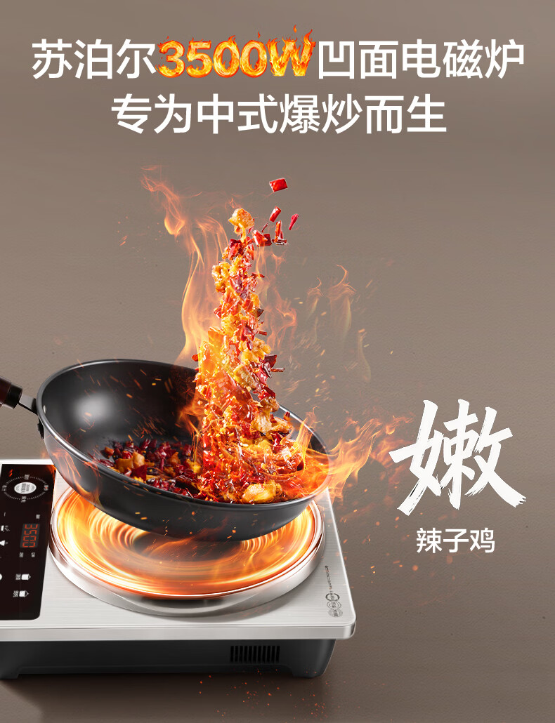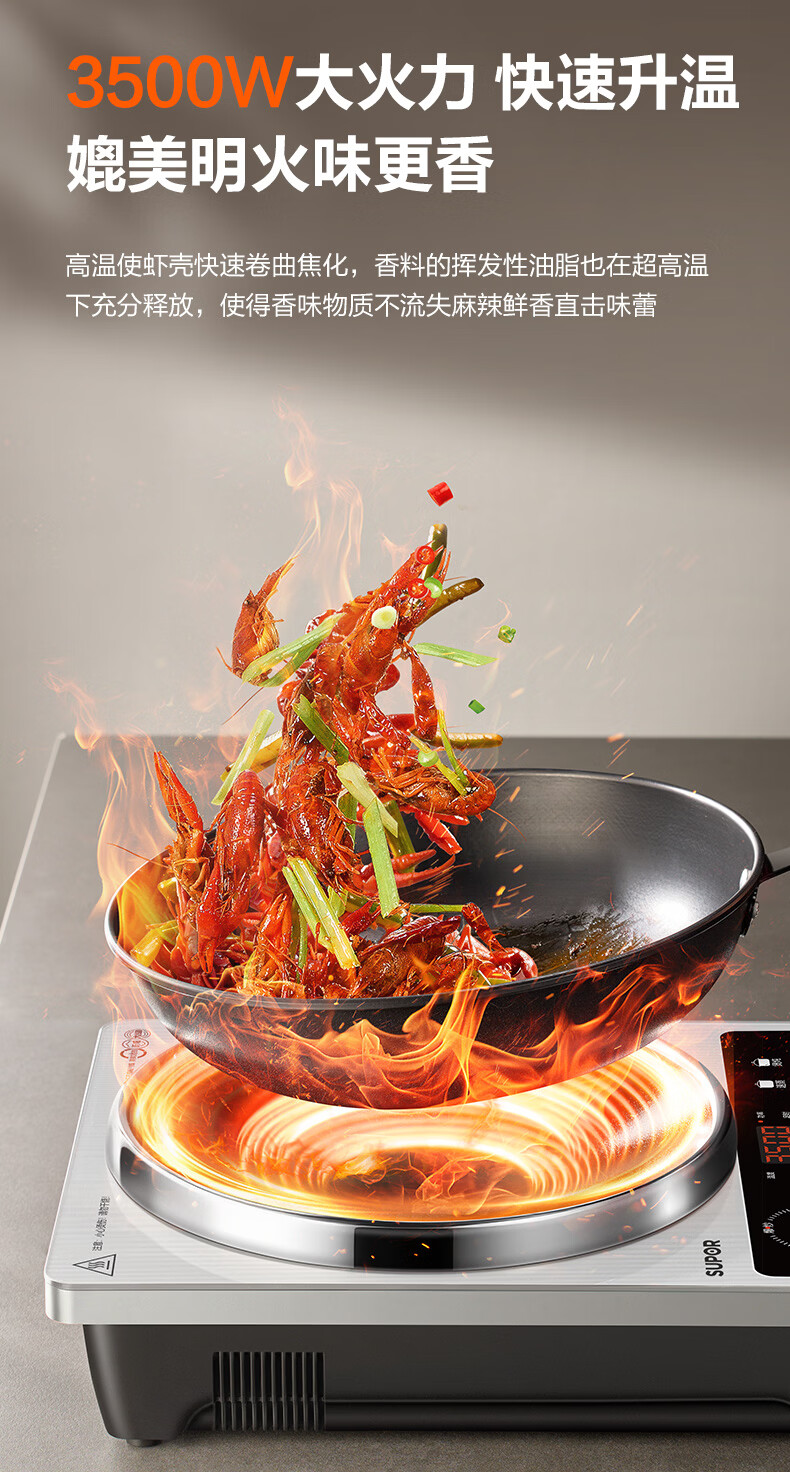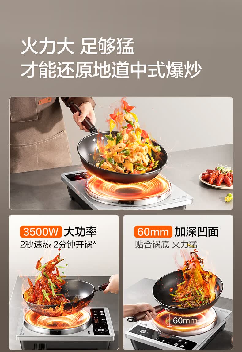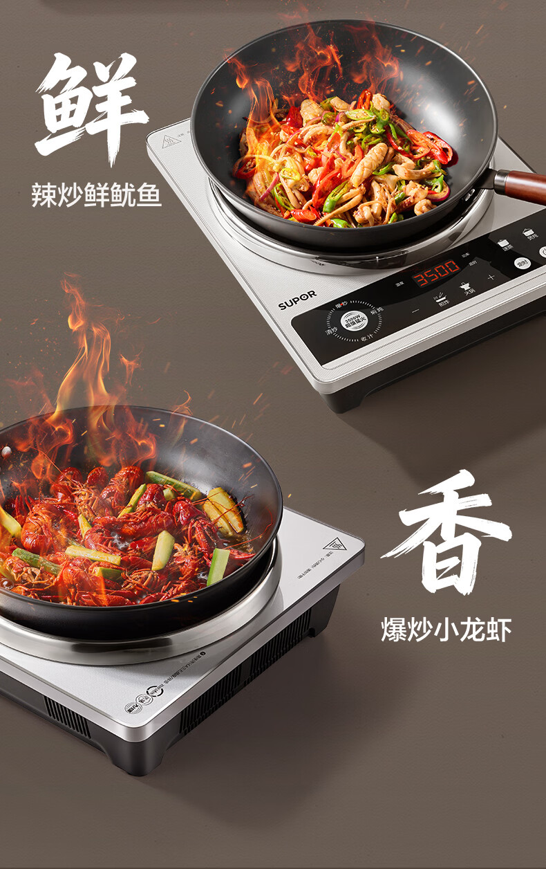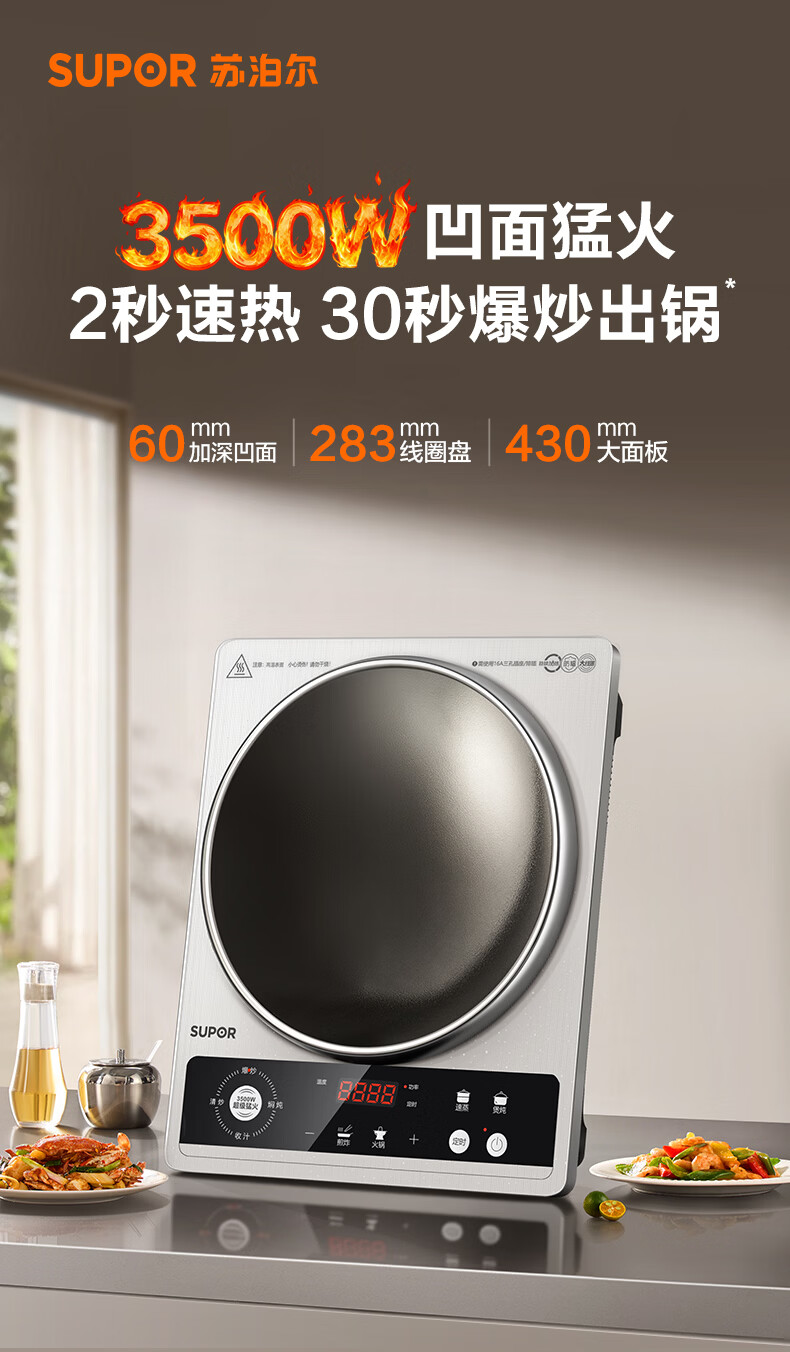 苏泊尔(SUPOR)【新品】大功率凹凹猛电磁炉凹面多功能家用猛火3500W爆炒电池炉电陶炉C35-IA801C【赠专用铁锅】