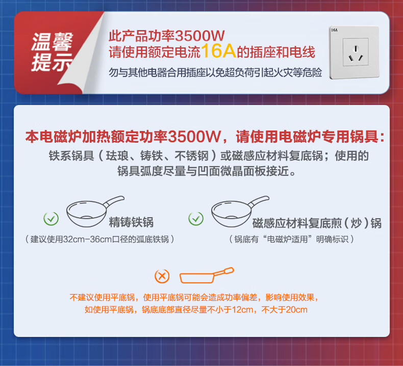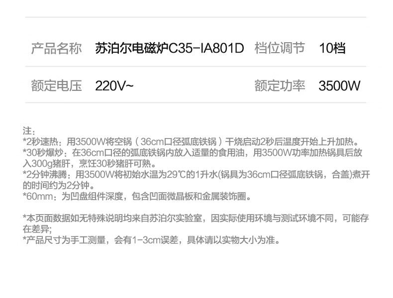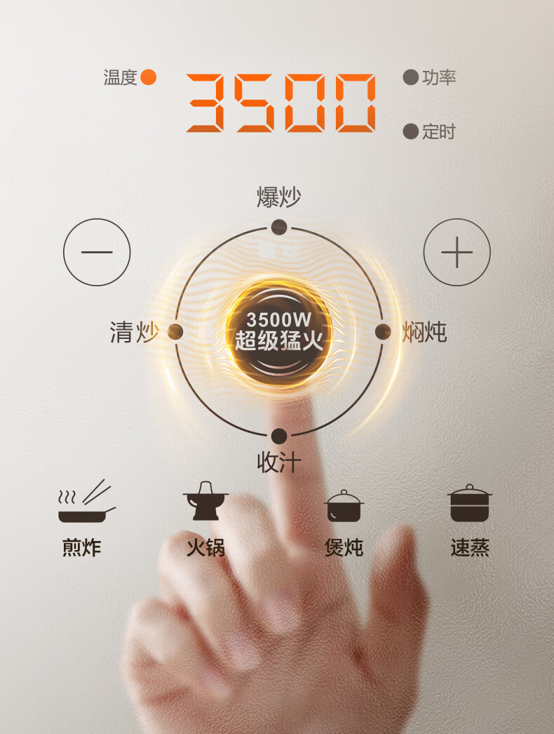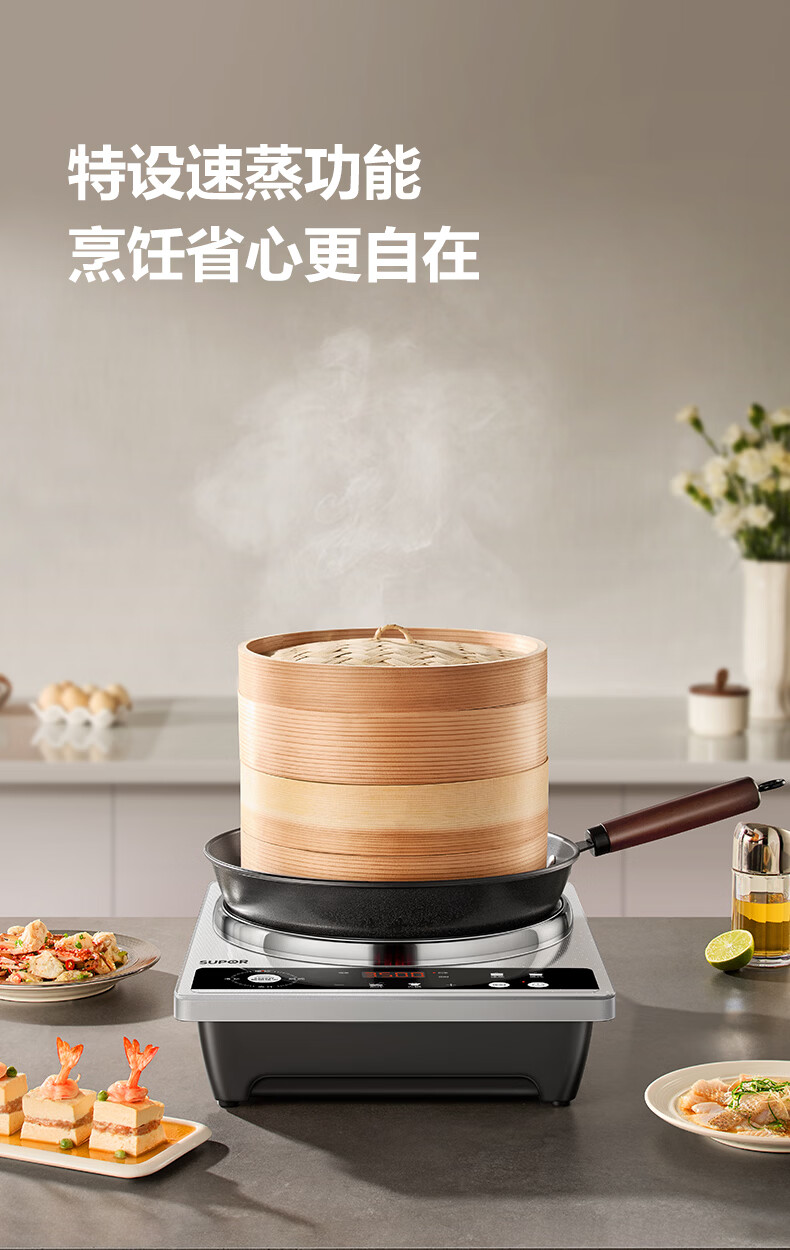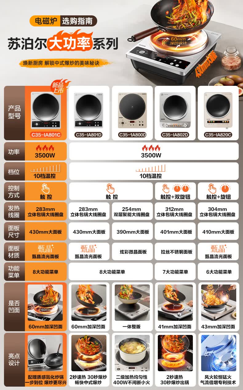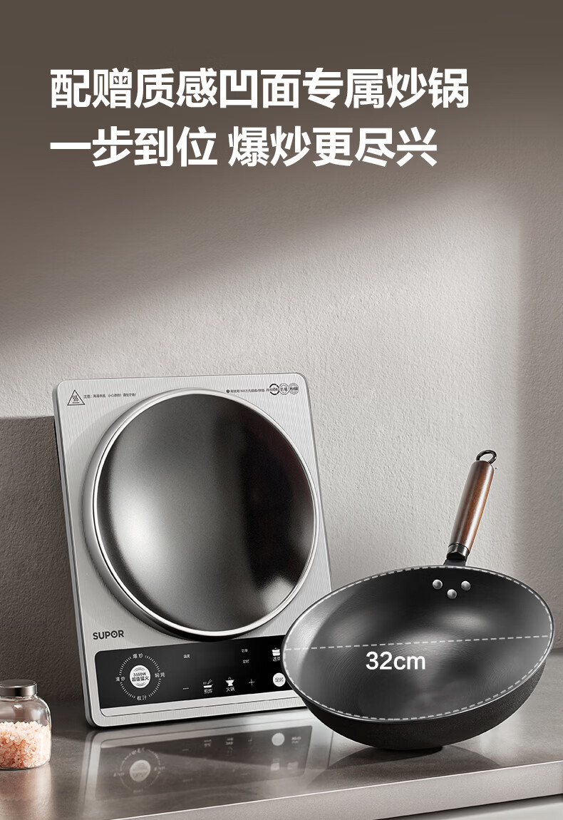 苏泊尔(SUPOR)【新品】大功率凹凹猛电磁炉凹面多功能家用猛火3500W爆炒电池炉电陶炉C35-IA801C【赠专用铁锅】