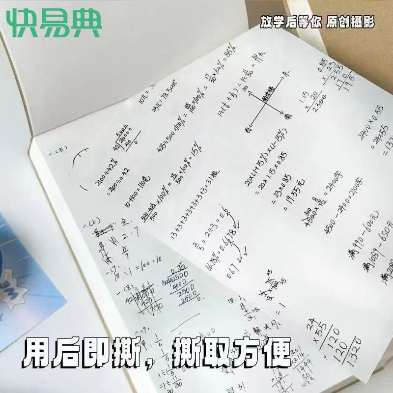快易典加厚草稿本可撕式奶砖草稿纸学生刷题简约a6便携黑卡空白纸