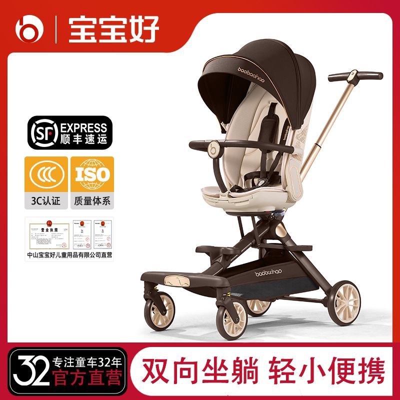 宝宝好V16C轻便可坐可躺双向高景观遛娃原装折叠手推车