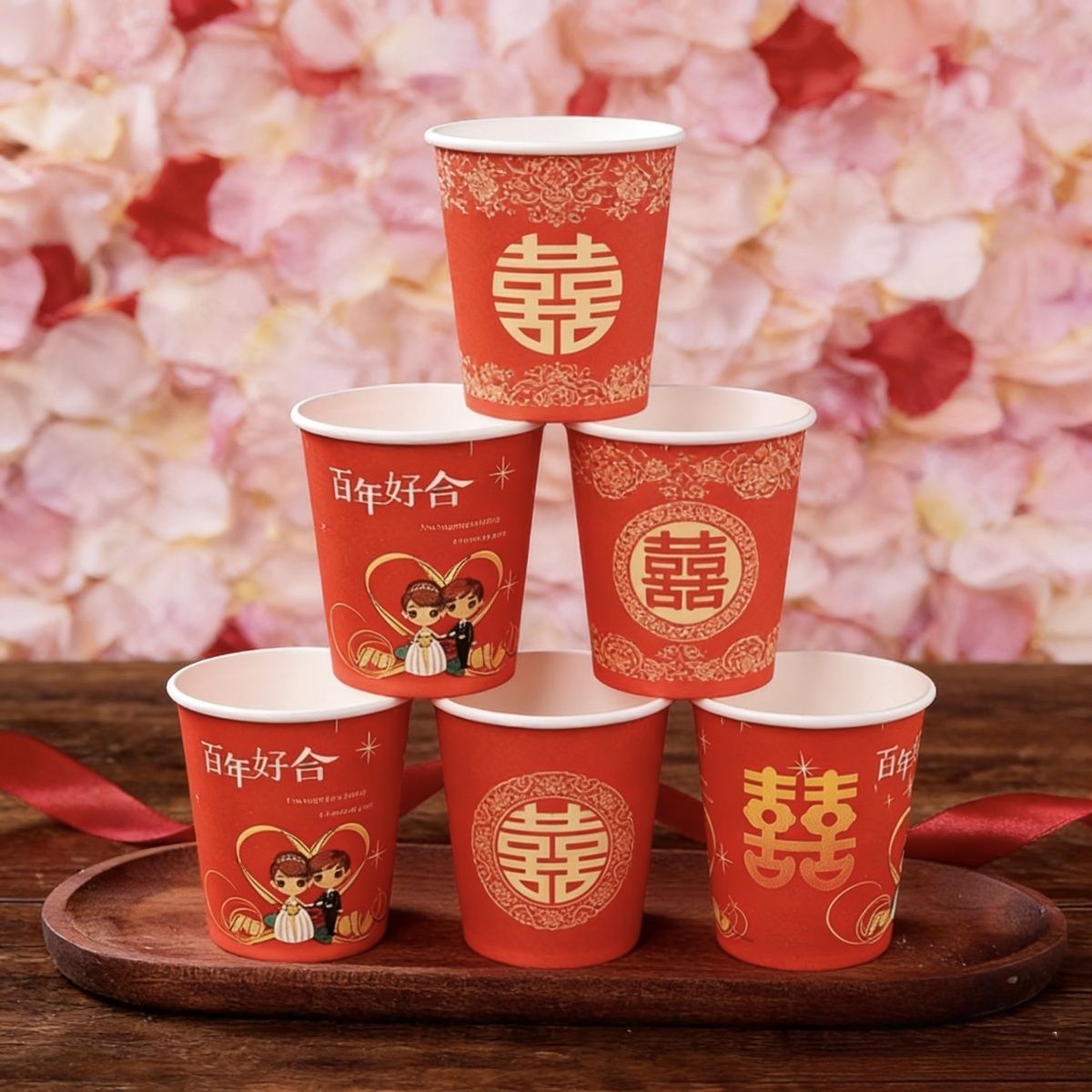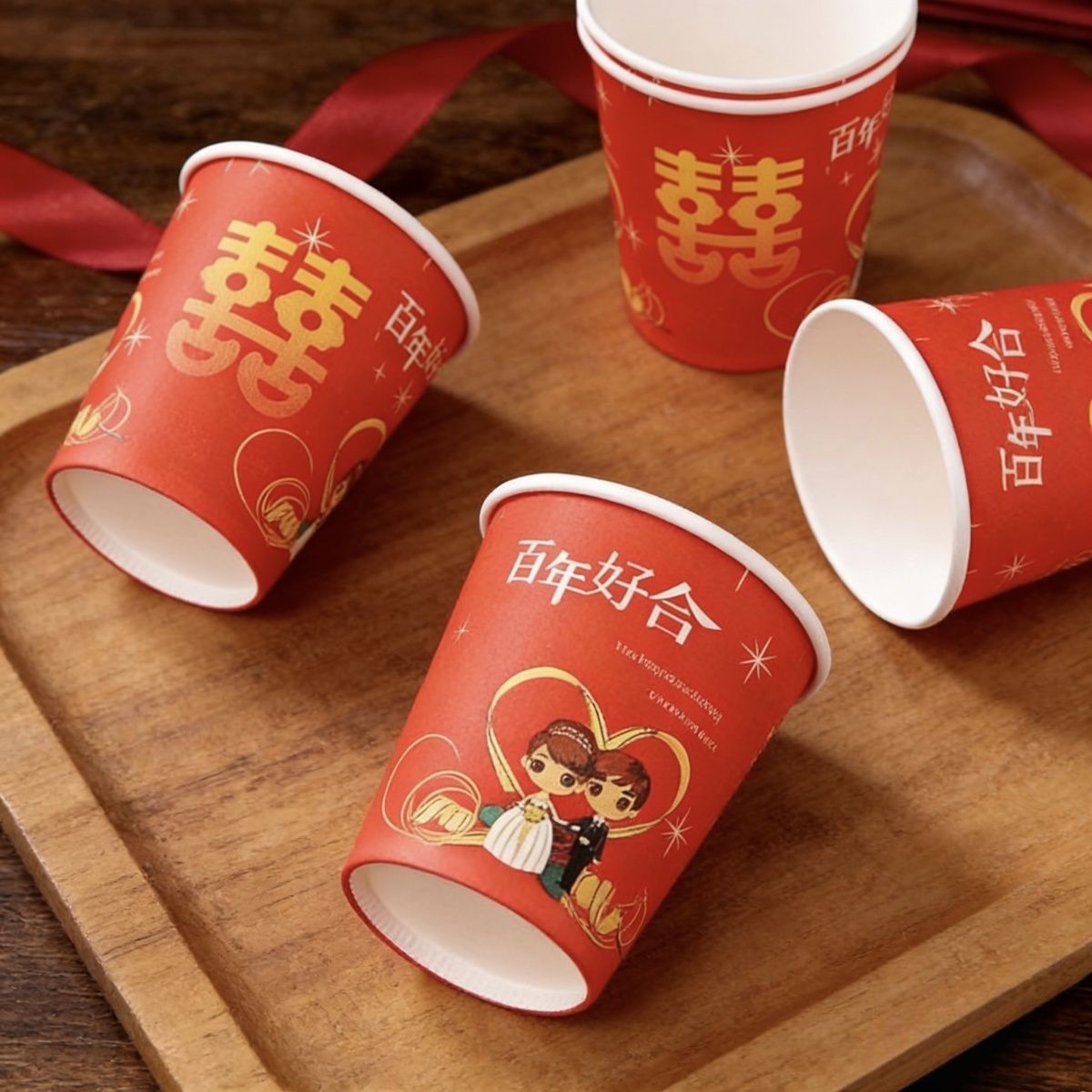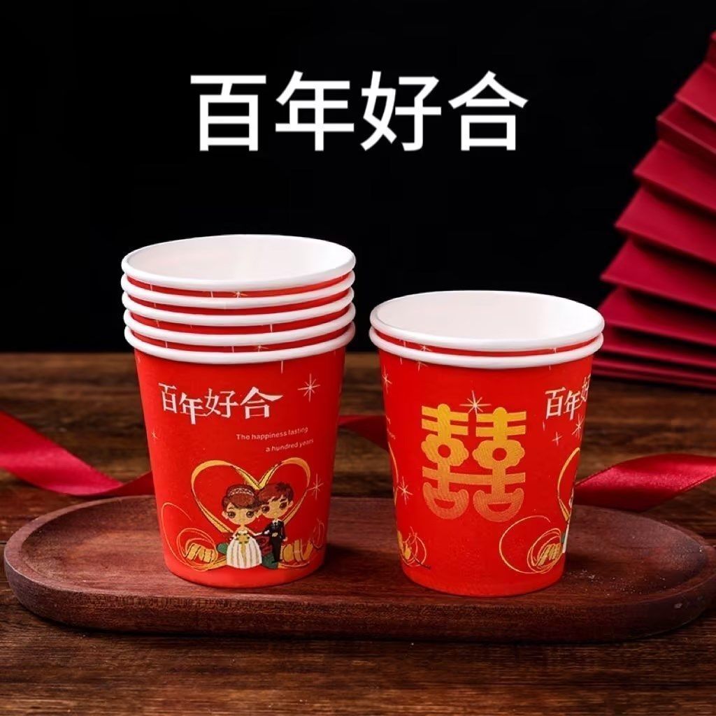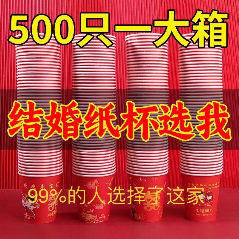加厚结婚杯子纸杯婚宴婚礼一次性家用喜庆用品婚庆水杯红色一整箱