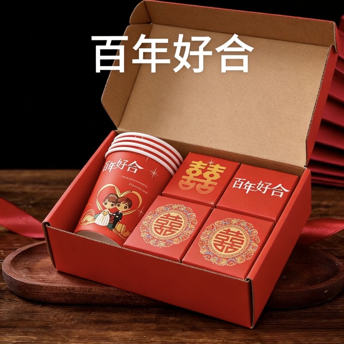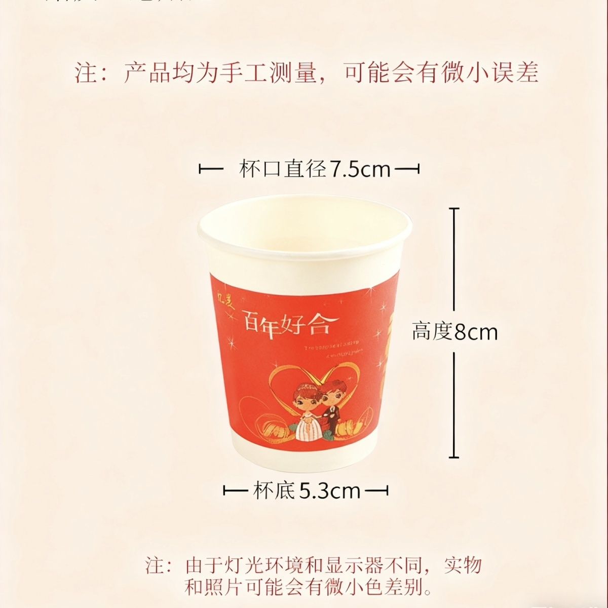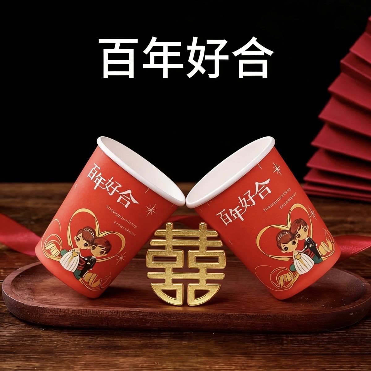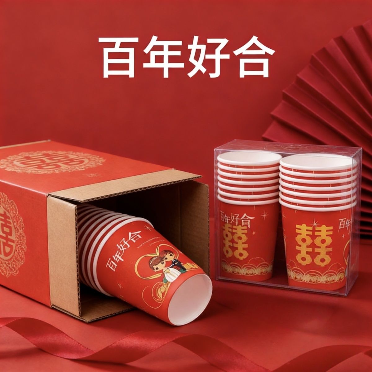 加厚结婚杯子纸杯婚宴婚礼一次性家用喜庆用品婚庆水杯红色一整箱
