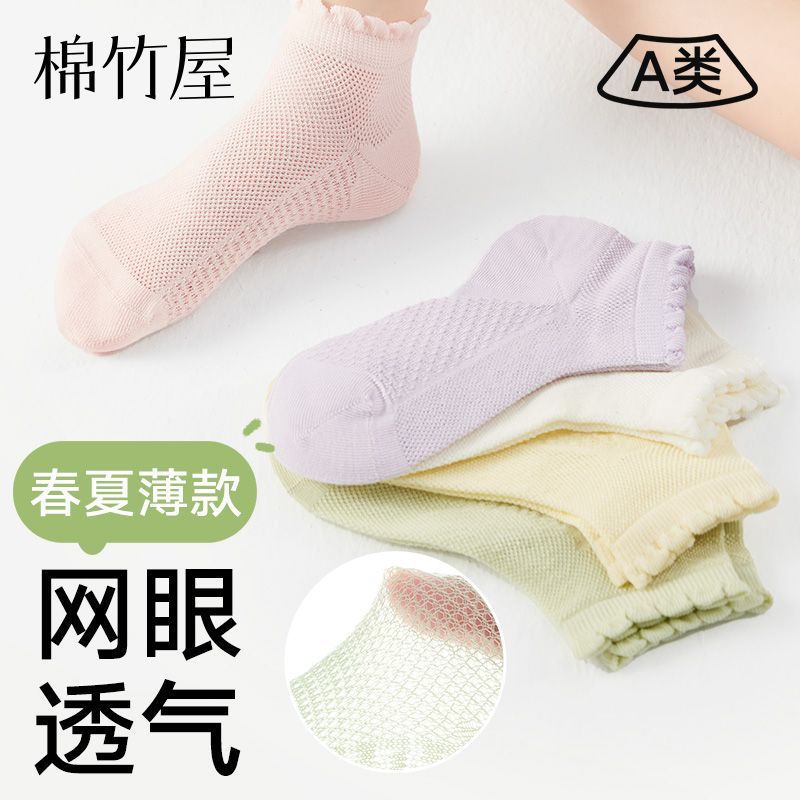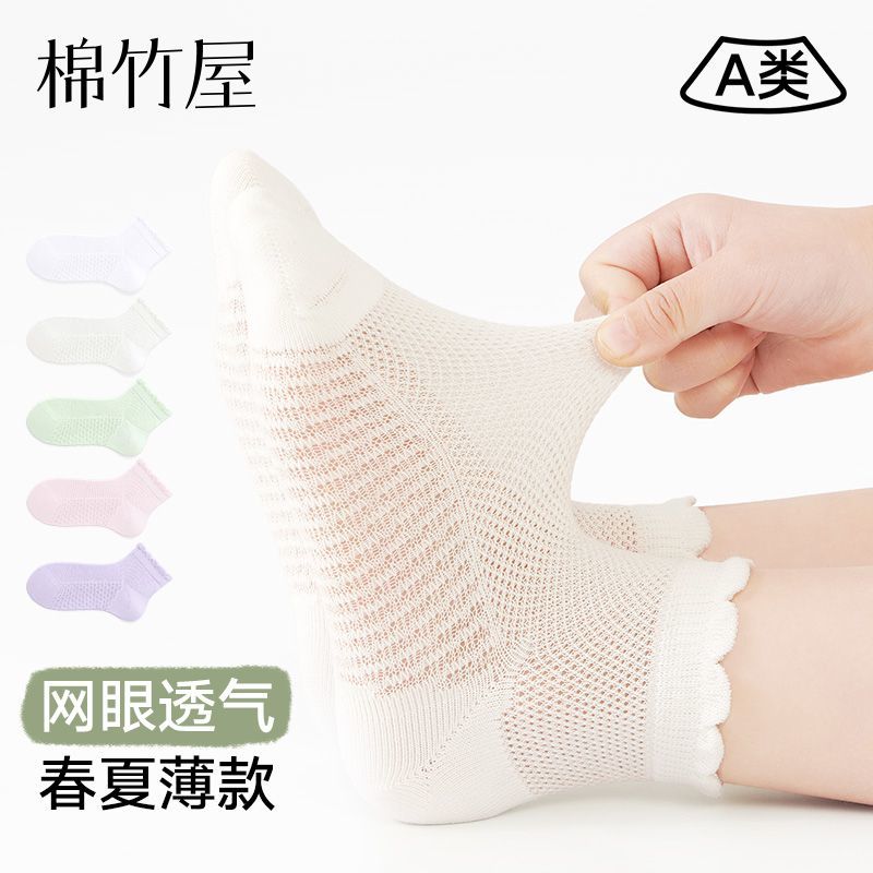儿童袜子女童春夏薄款纯棉防臭吸汗a类夏天网眼透气学生女孩短袜