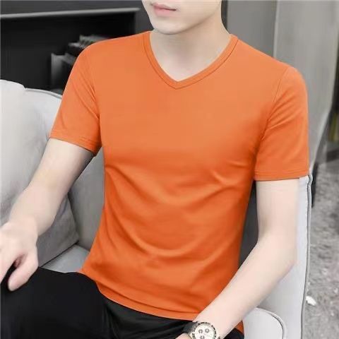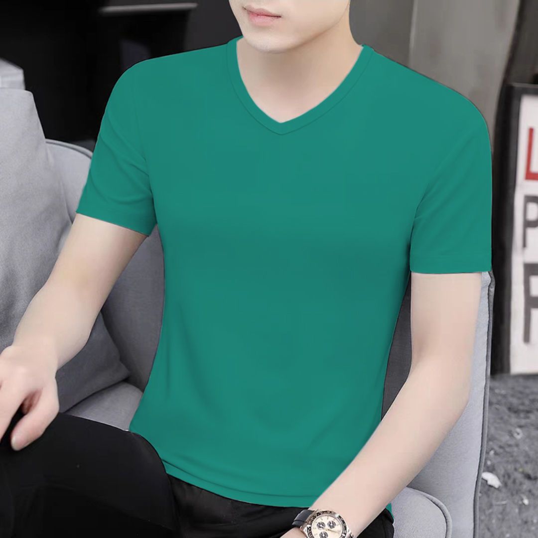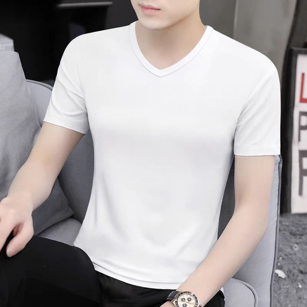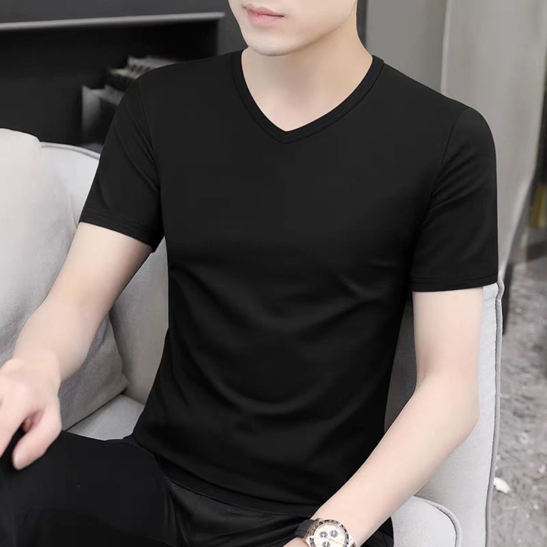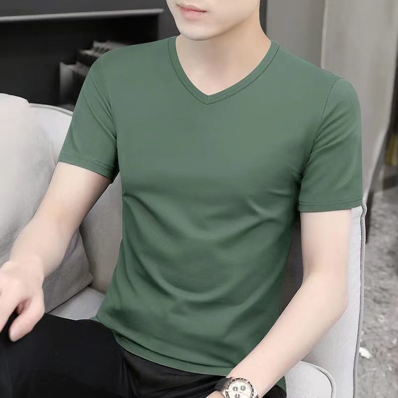 【清仓处理】短袖T恤男士2023夏季纯色V领潮流弹力打底体恤衣服