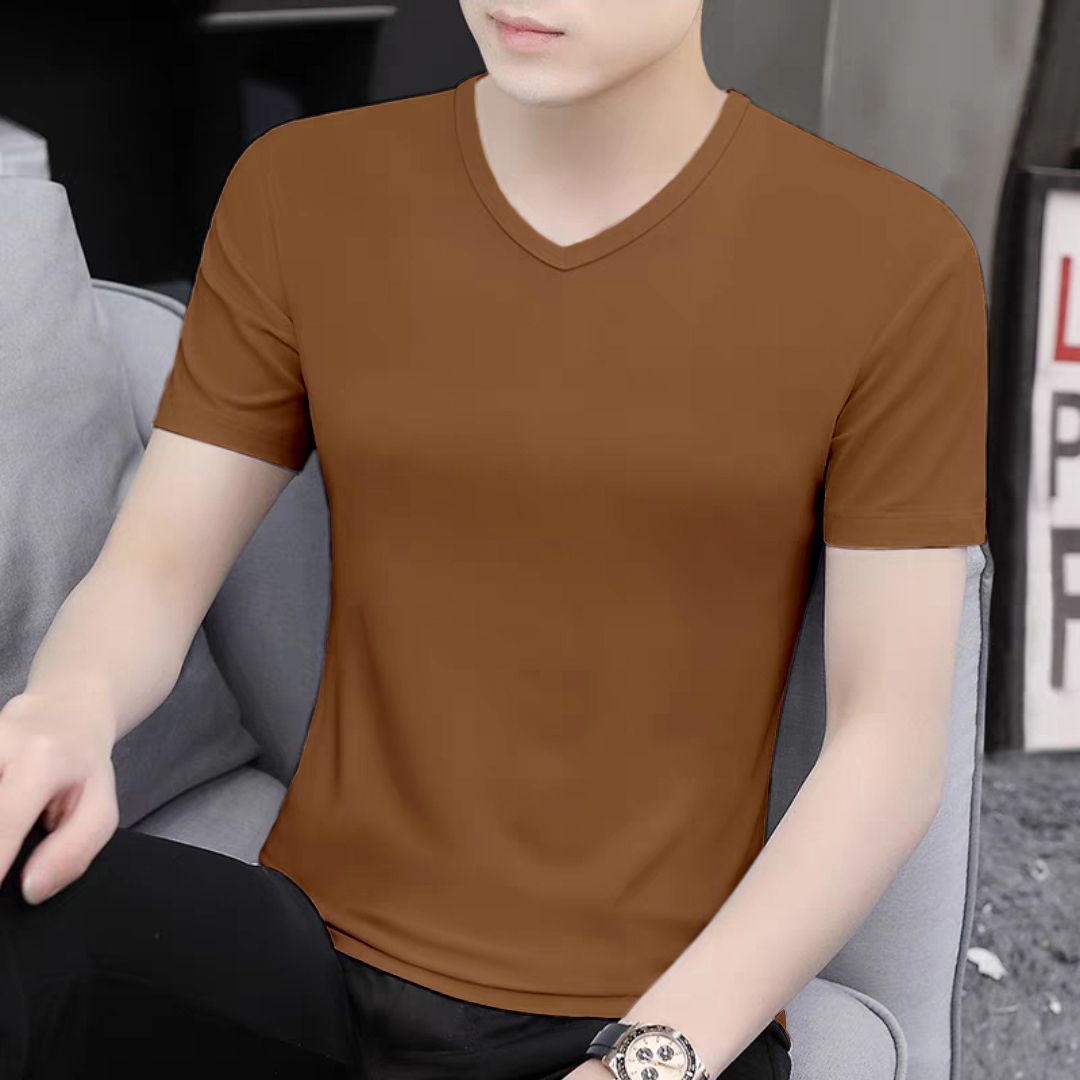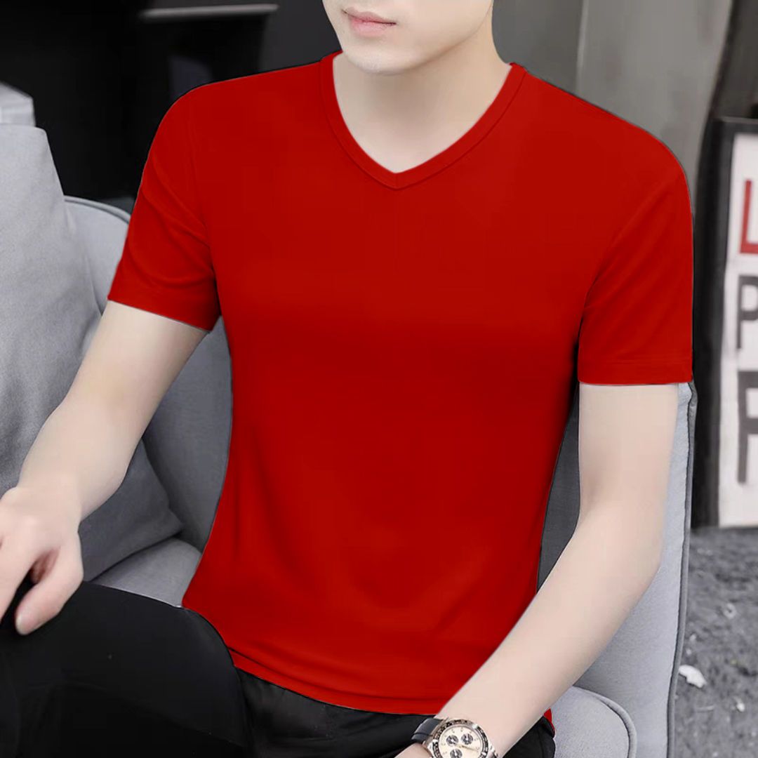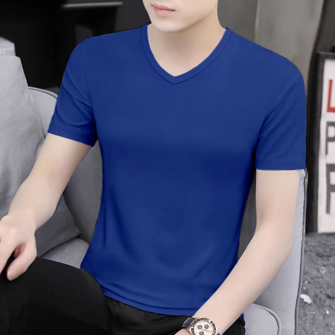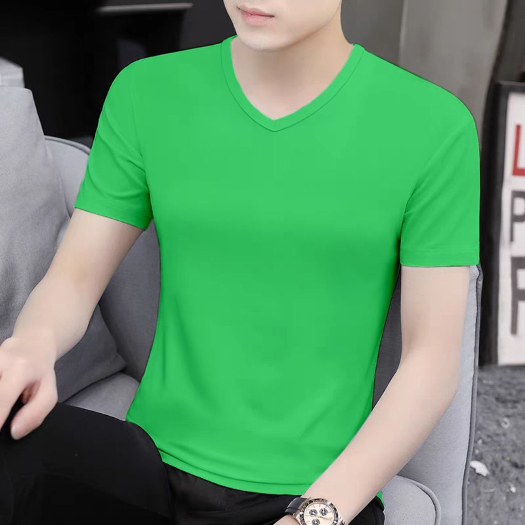 【清仓处理】短袖T恤男士2023夏季纯色V领潮流弹力打底体恤衣服