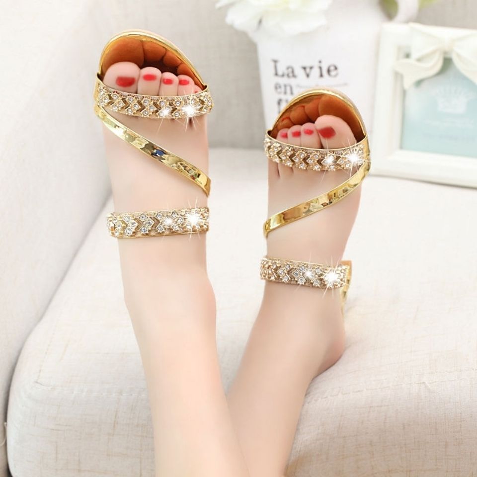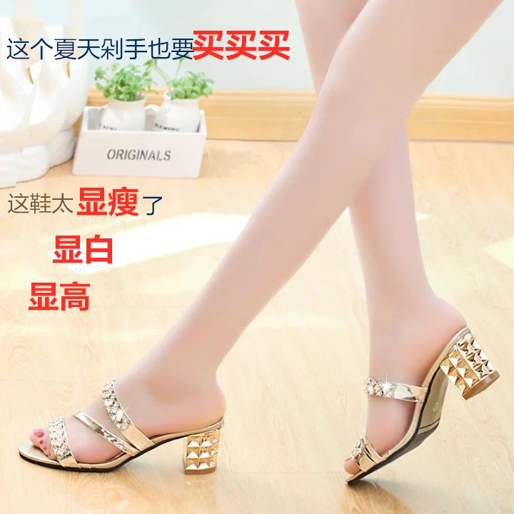 2026夏新款凉鞋女中跟高跟凉拖鞋女粗跟凉鞋水钻半拖鞋女韩版凉鞋