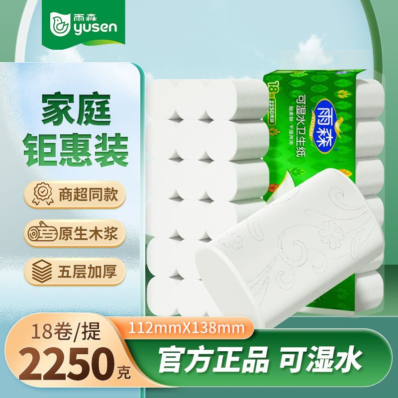 【4.5斤18卷】雨森卷纸可湿水卫生纸巾批发手纸家用实惠厕纸加厚