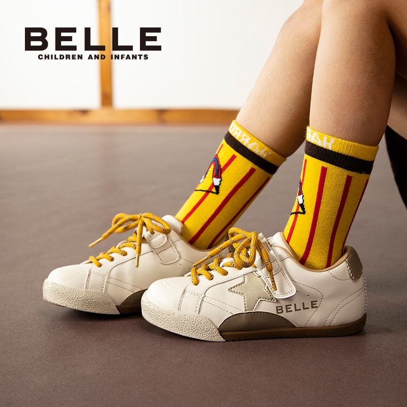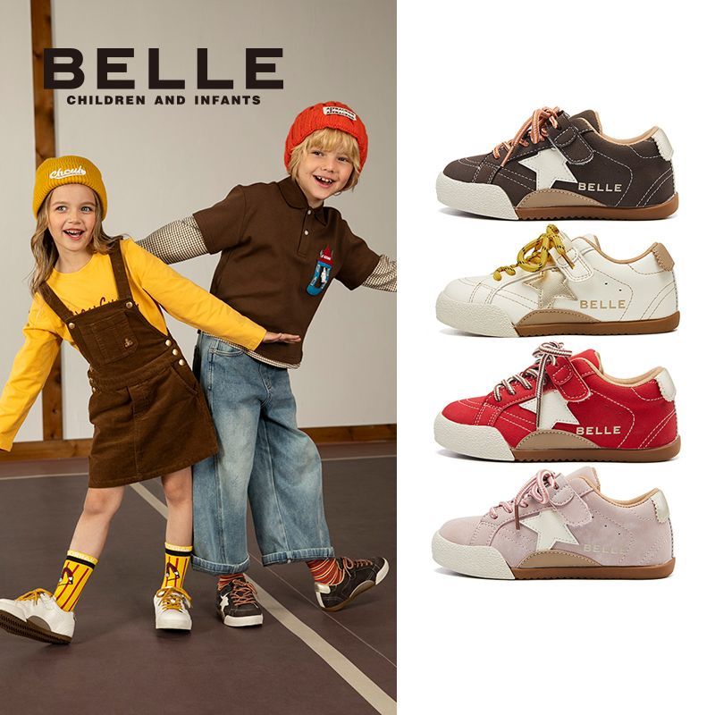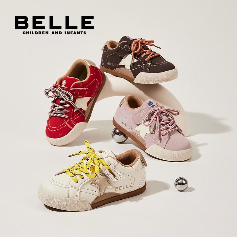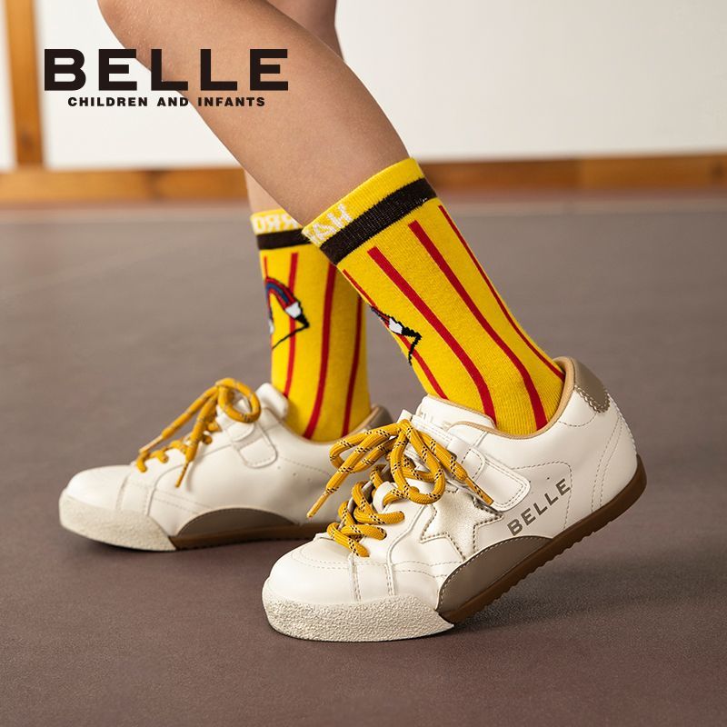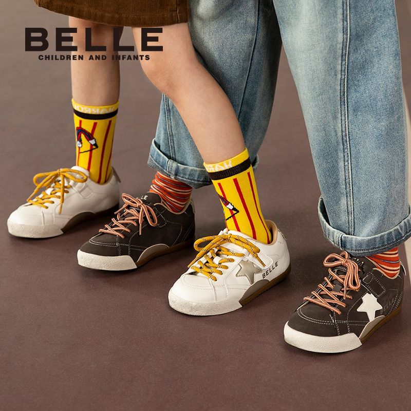 百丽童鞋儿童板鞋男女童软底舒适时尚撞色百搭星星休闲鞋德训鞋
