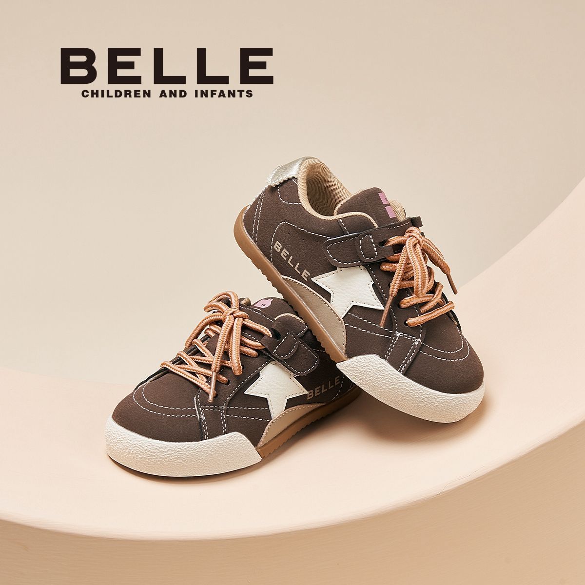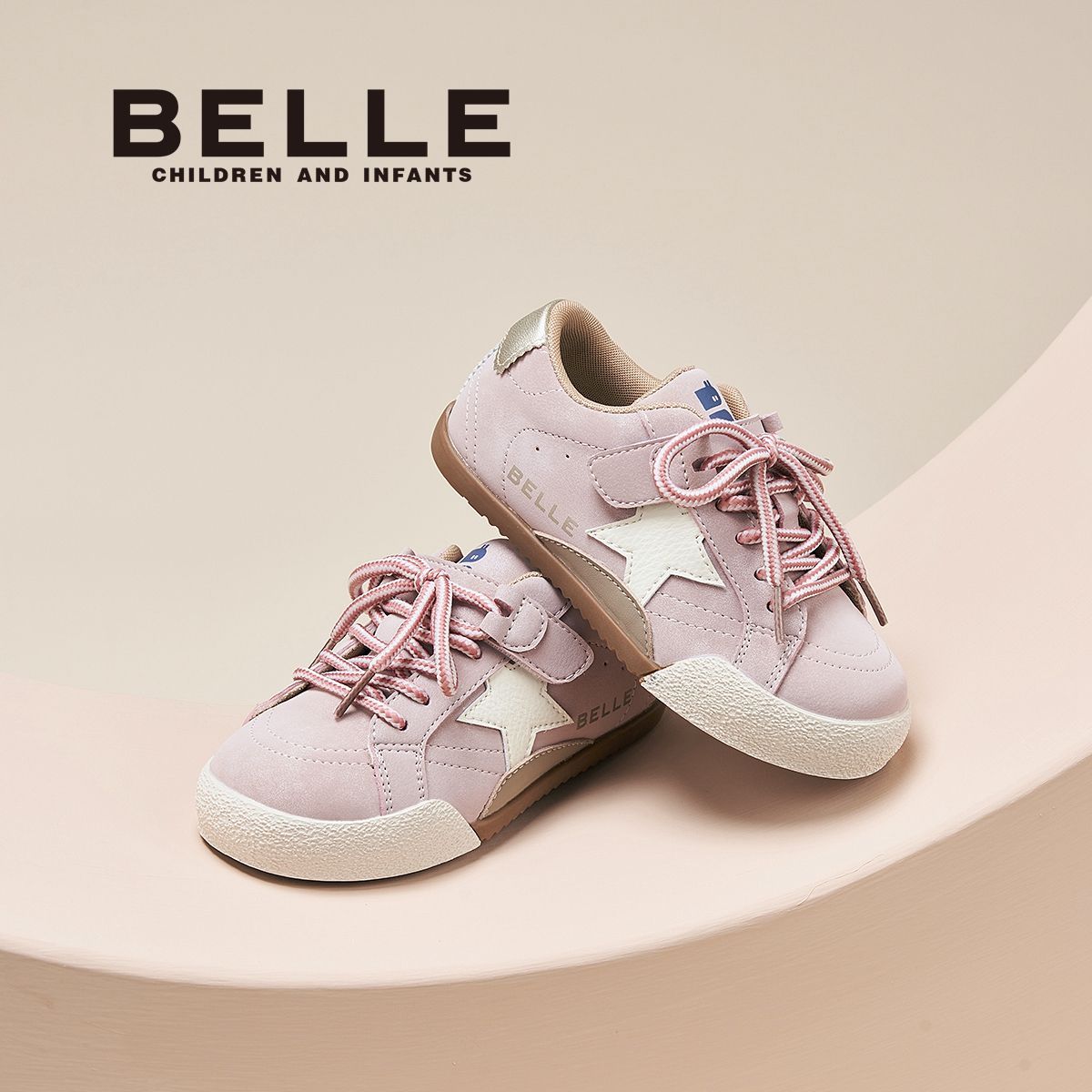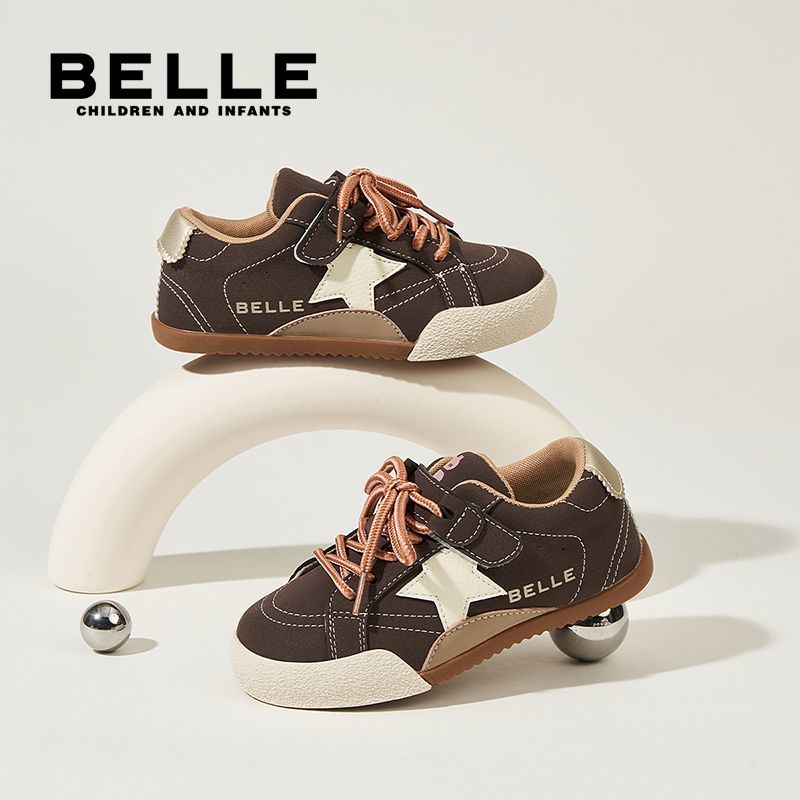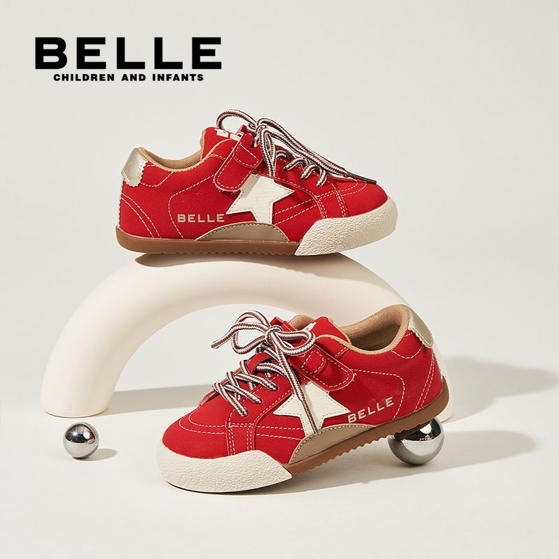 百丽童鞋儿童板鞋男女童软底舒适时尚撞色百搭星星休闲鞋德训鞋