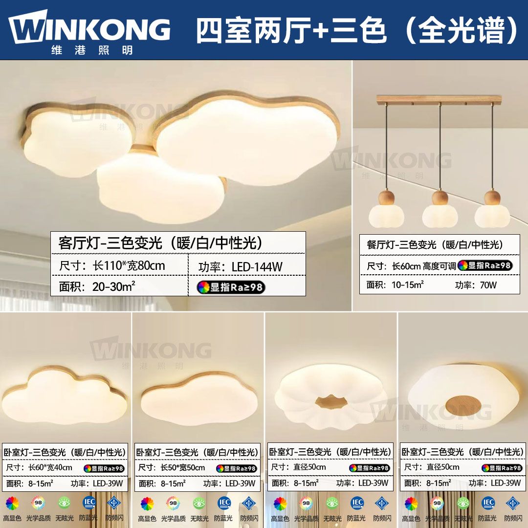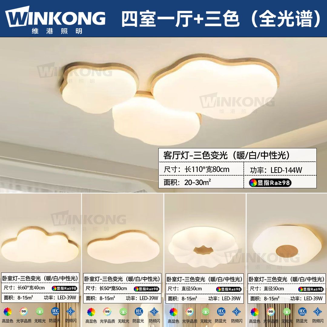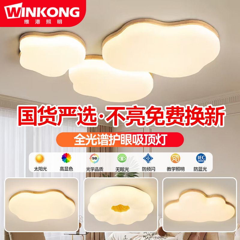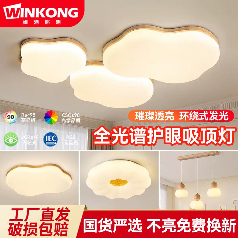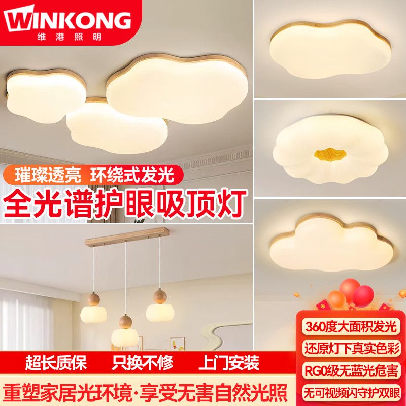 客厅主灯原木风中山灯具奶油风吸顶灯现代简约大气2026新款云朵灯