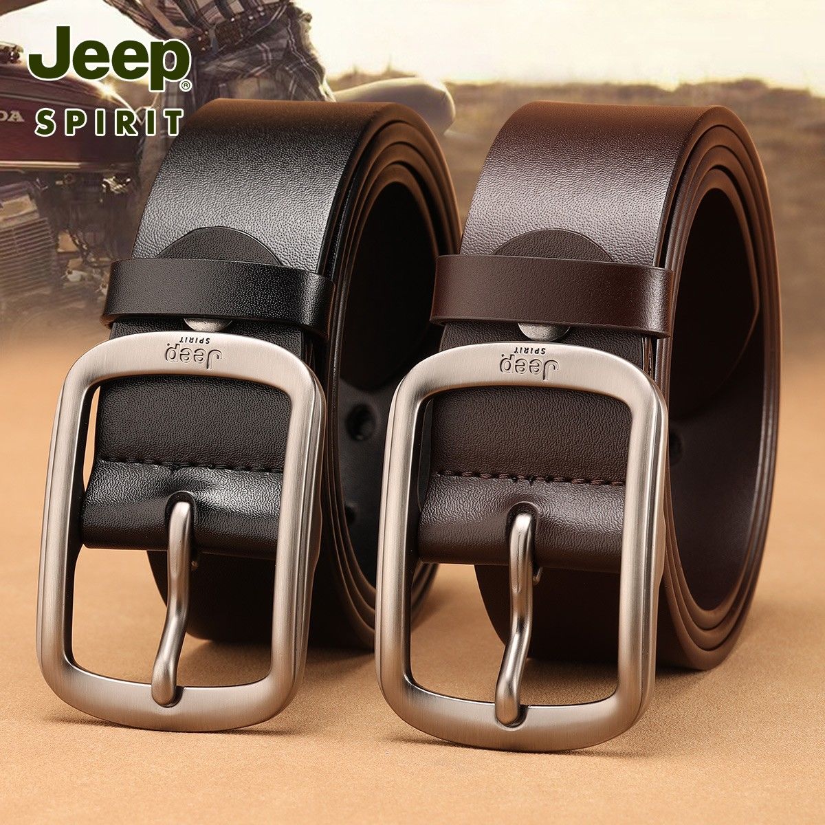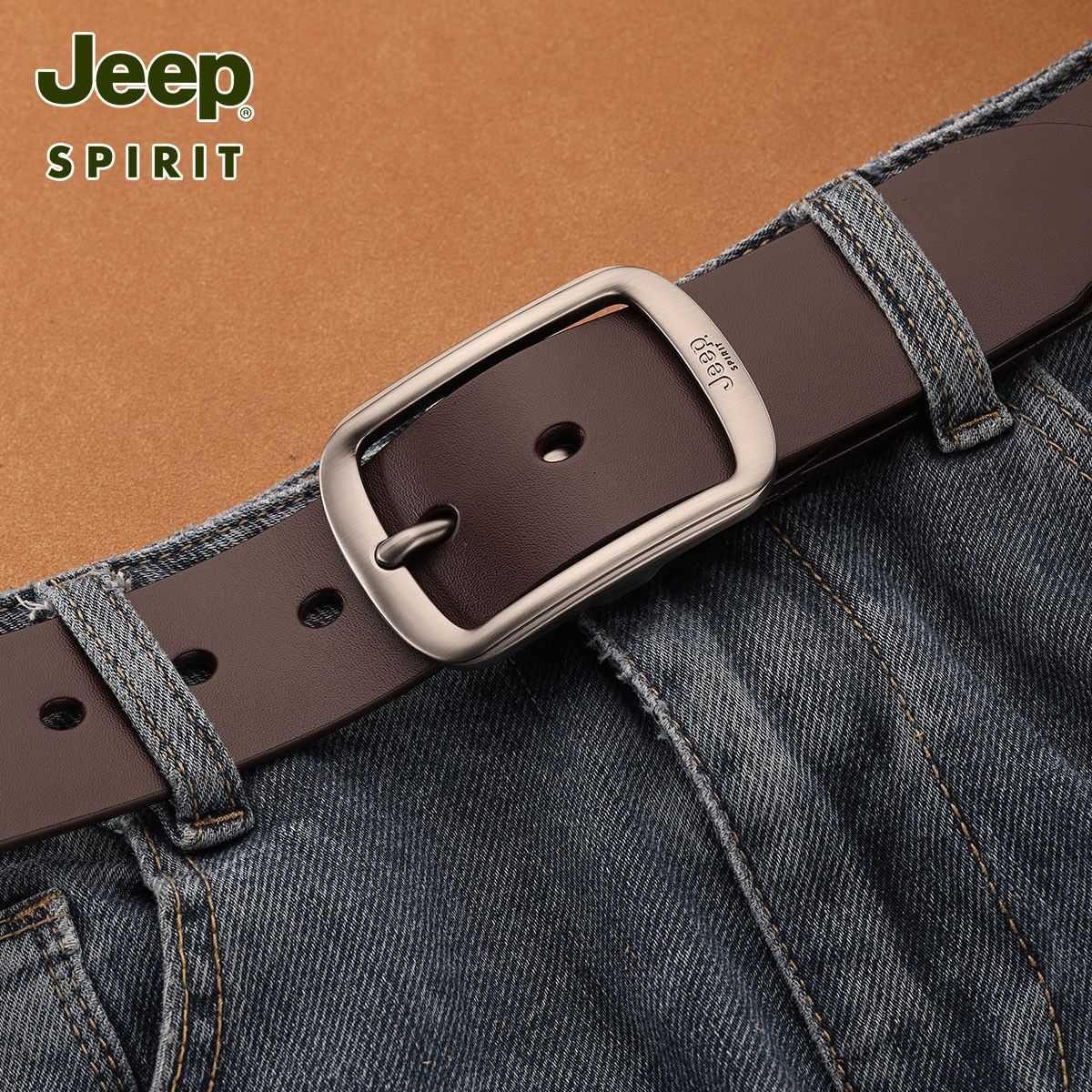 Jeep吉普男士皮带真皮男款2024新款中年青年休闲纯牛皮针扣裤腰带