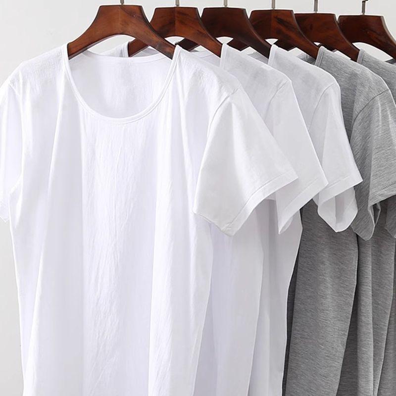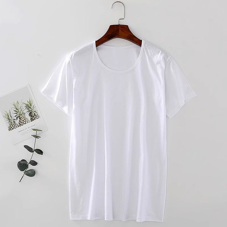 男士短袖背心纯棉老年人圆领宽松大码汗衫夏季老头衫T恤薄款白色
