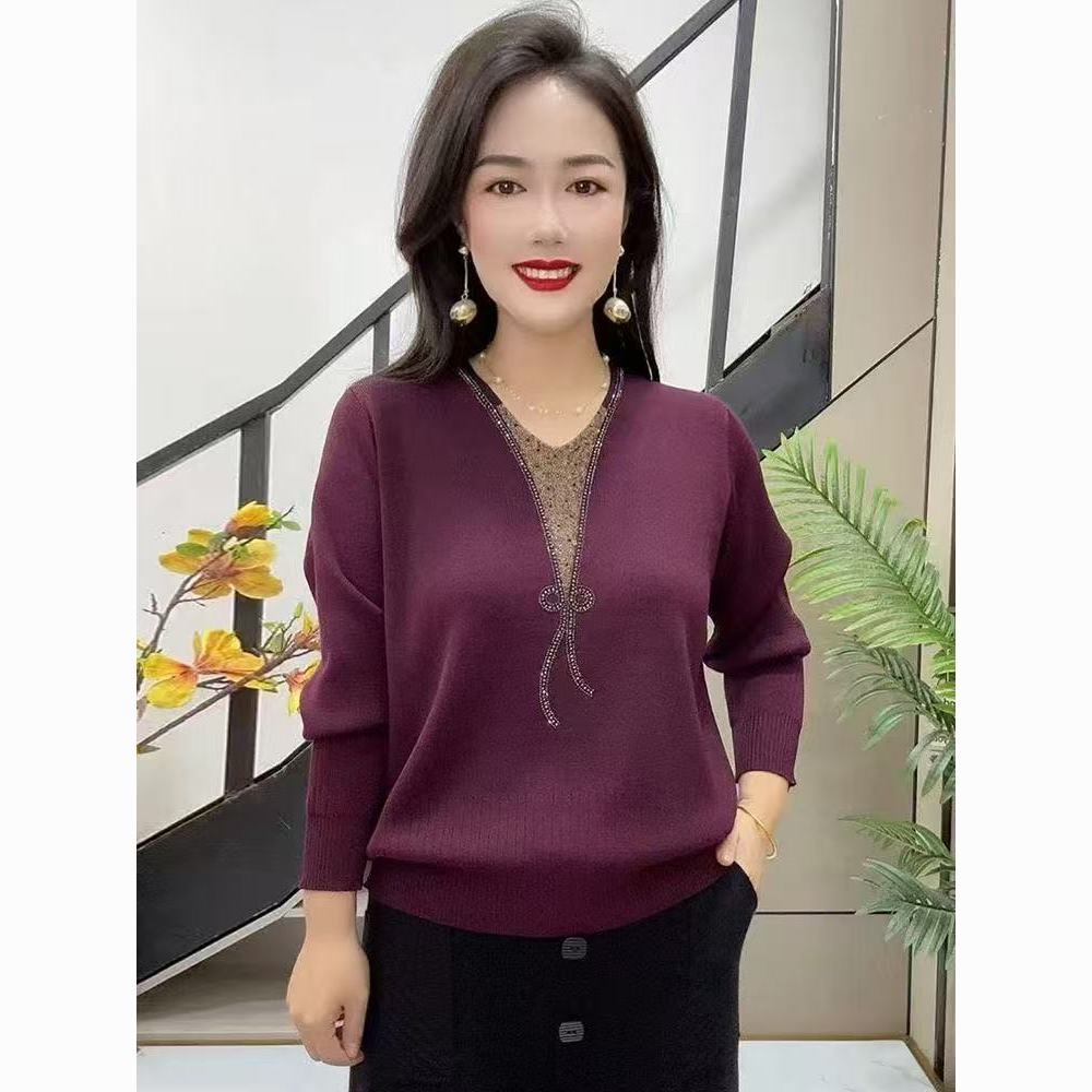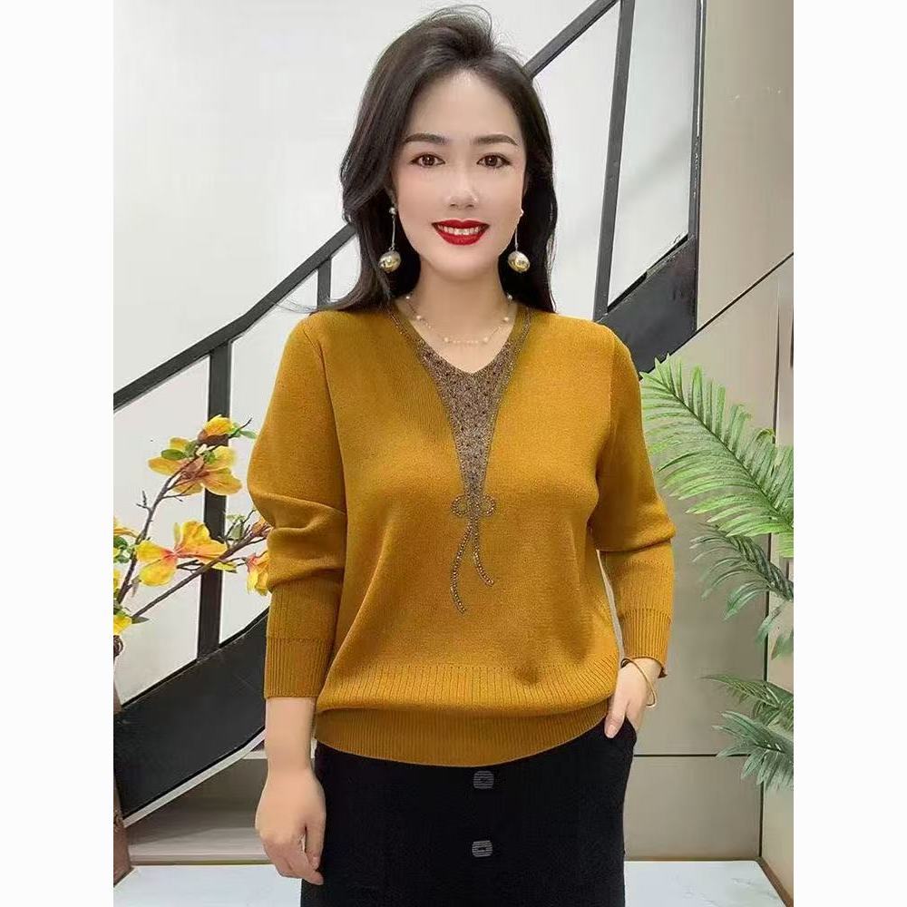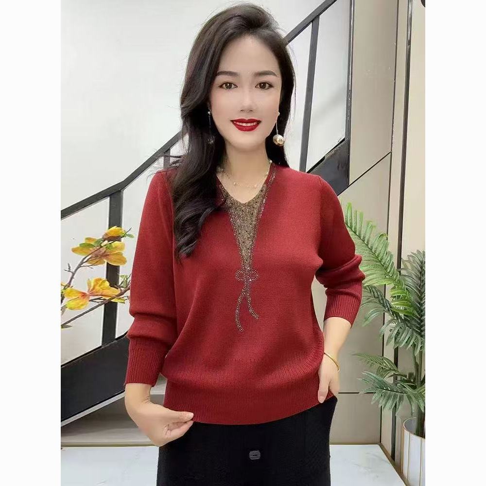 新款春秋季妈妈装针织毛衣女中老年宽松大码时尚显瘦打底衫上衣女