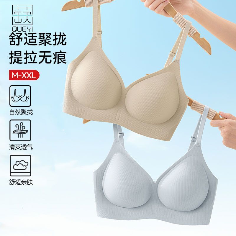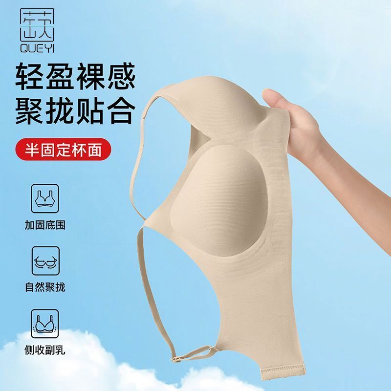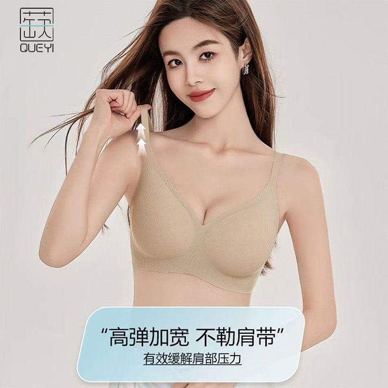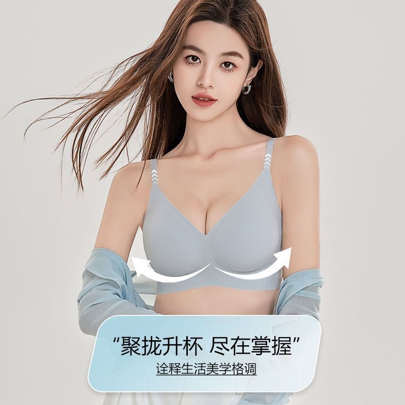 蒛一无痕内衣女舒适透气无钢圈果冻胶软支撑收副乳文胸罩0.8cmBC
