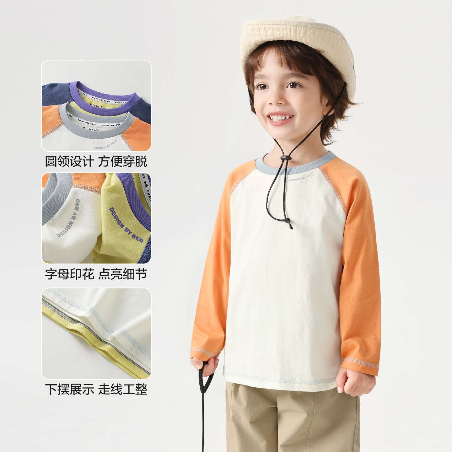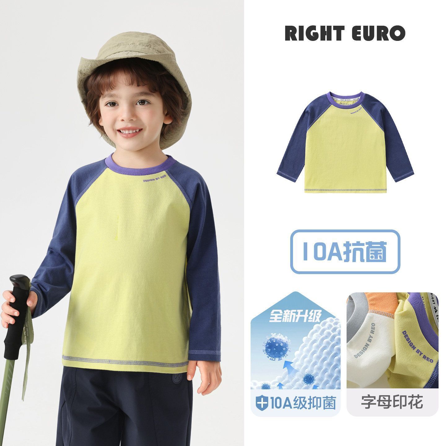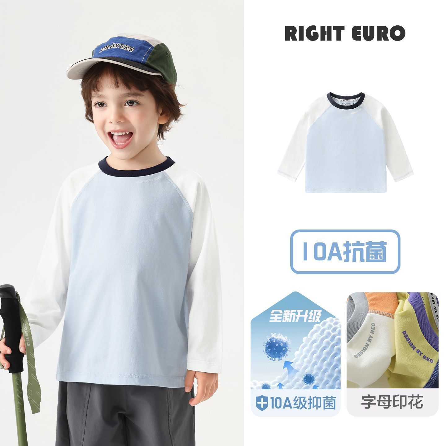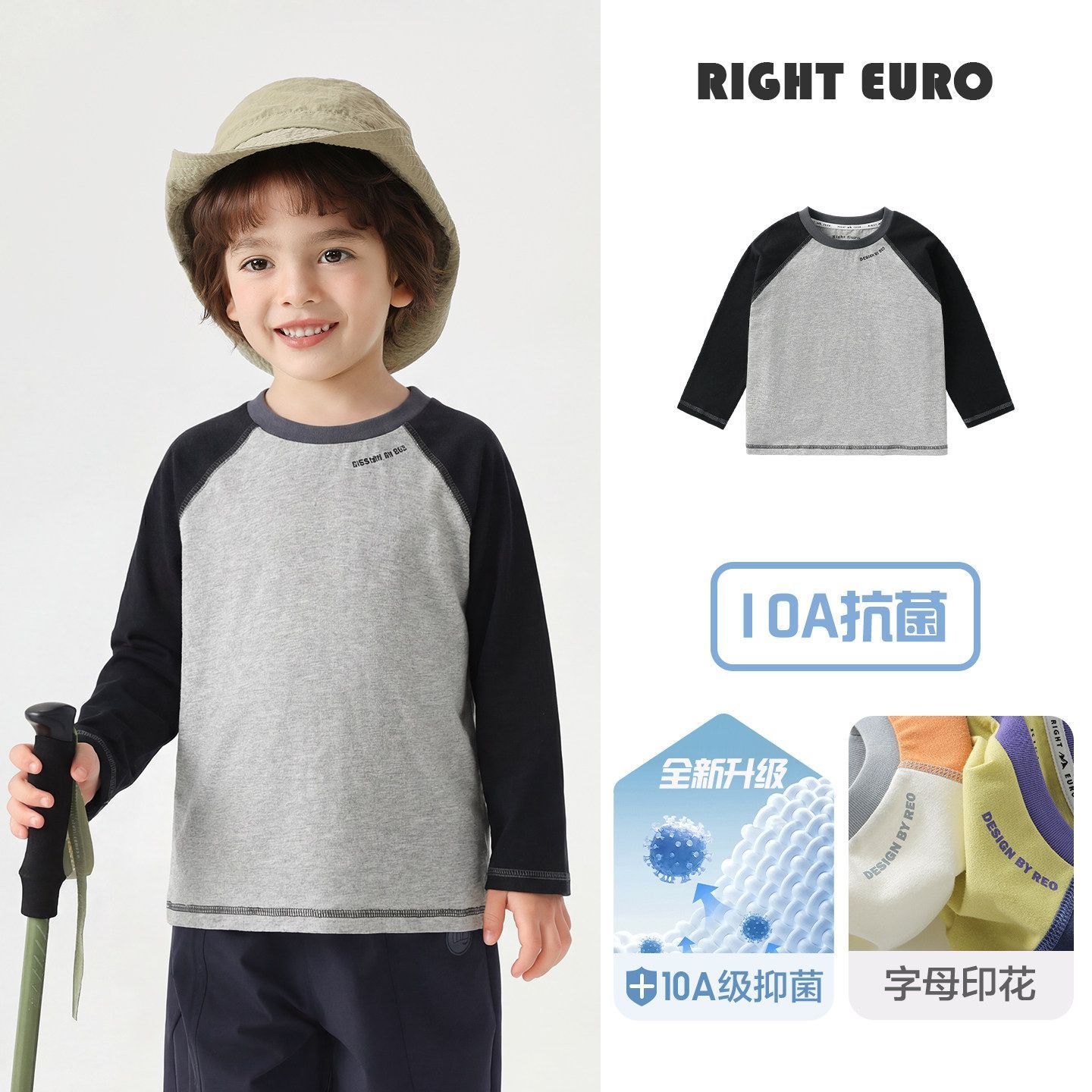 右欧男童纯棉抑菌长袖T恤春装宝宝抗菌童装内搭儿童小童打底衫潮