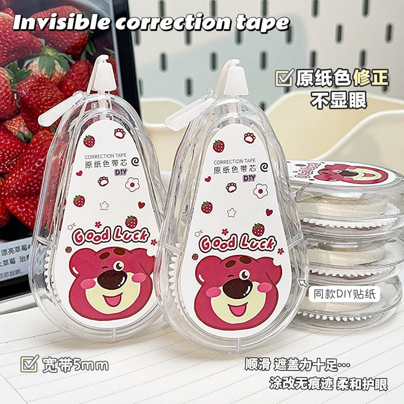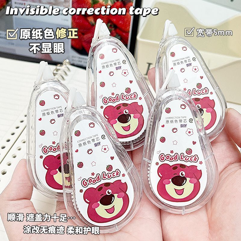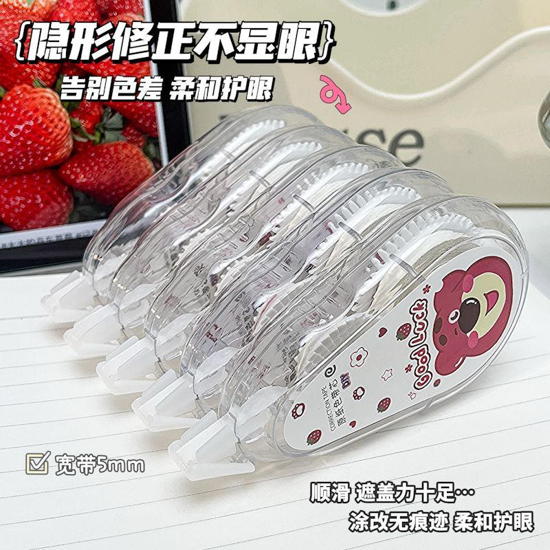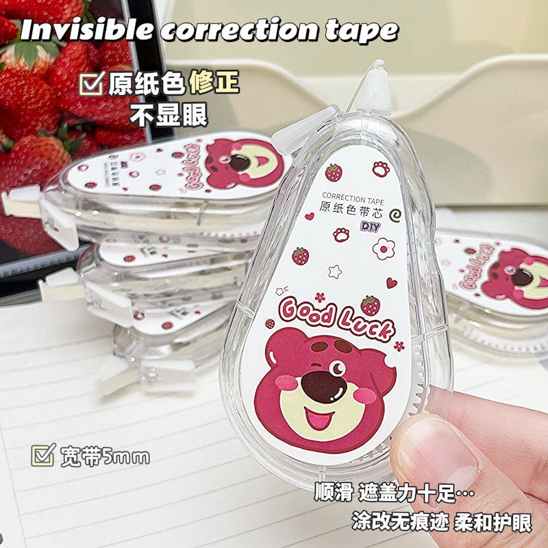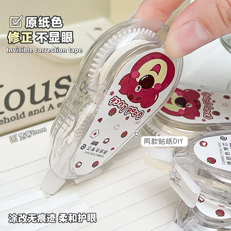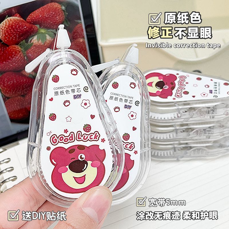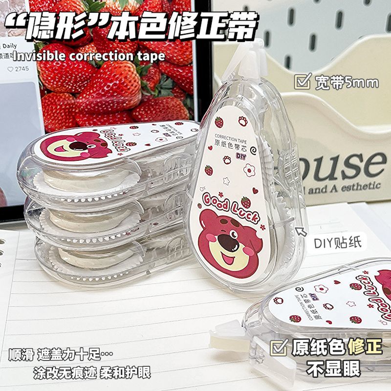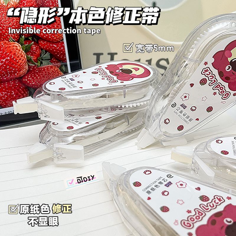 小熊大容量静音隐形修正带原纸色草莓涂改带幸运熊米黄带芯护眼