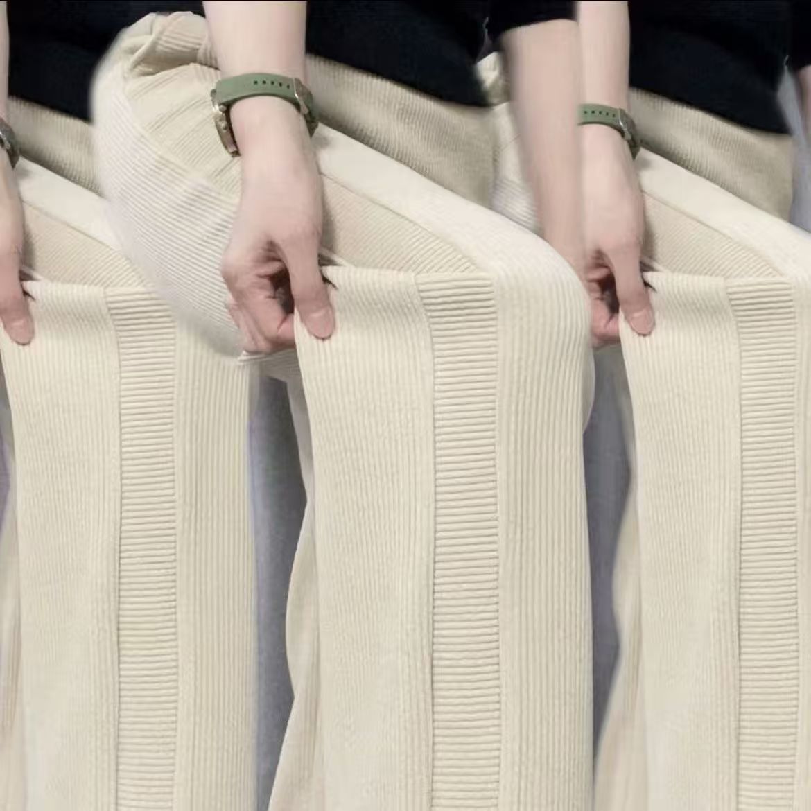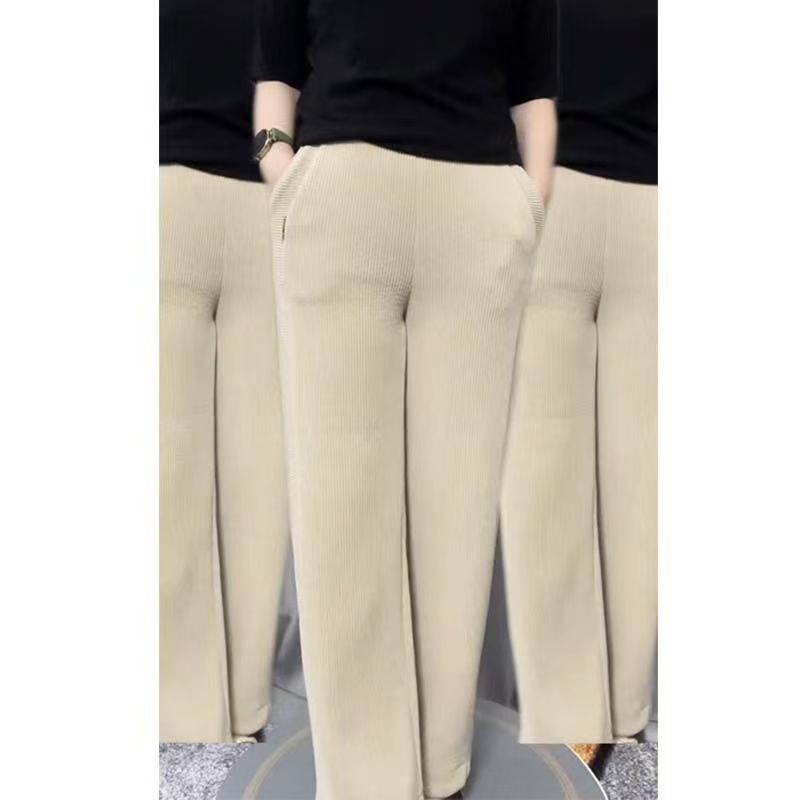 直筒裤新款2026春夏休闲裤欧条绒面料洋气时尚百搭宽松高腰裤子