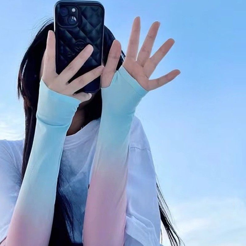 赵丽颖同款渐变袖套夏天户外骑车防晒女防紫外线护臂开车冰丝手袖